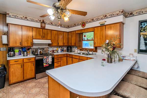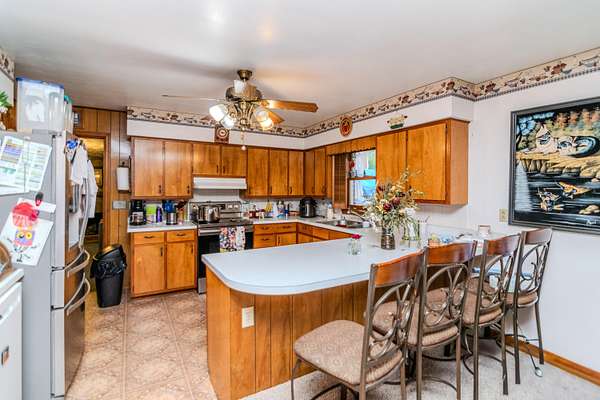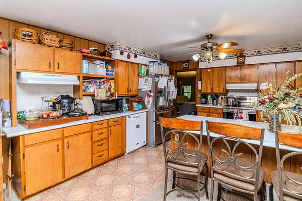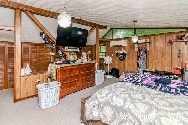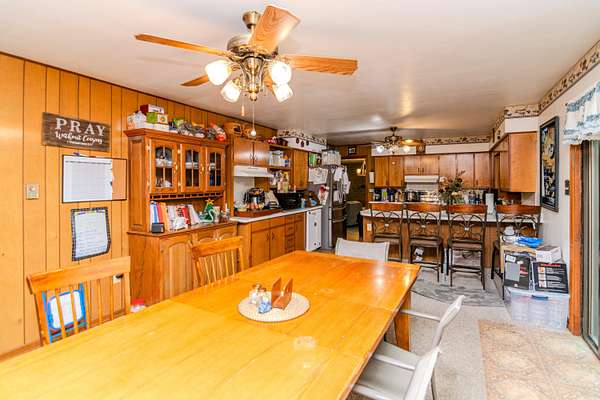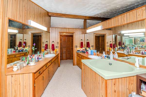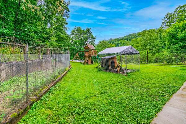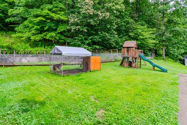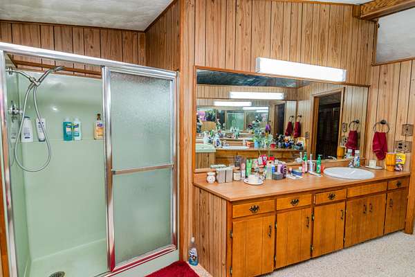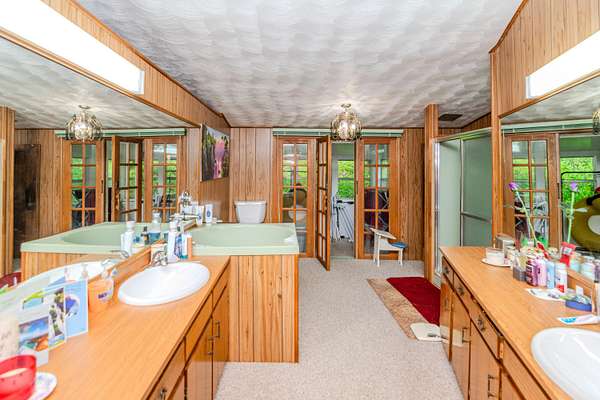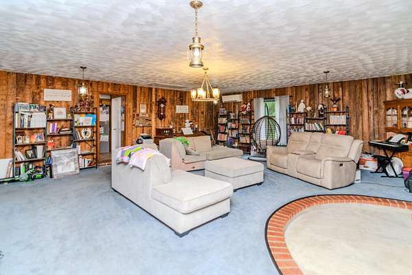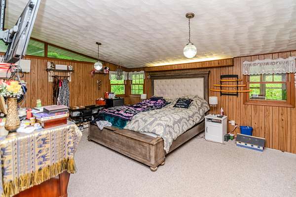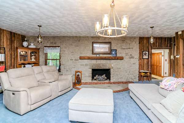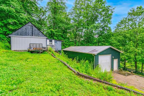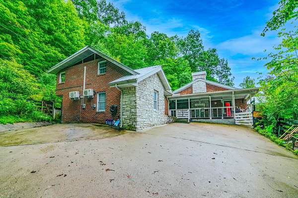 Tucked away on 7.89 private acres, 604 Highway 421 N in McKee offers a unique blend of space, character, and functionality just 30 minutes from I-75 and Berea. This distinctive home features 3 master suites, an additional bedroom, and a 19x25 bonus room with a large closet that could serve as a fifth bedroom. A white limestone fireplace anchors the expansive family room, while a second gas fireplace adds warmth to the dining area. The kitchen offers generous cabinet space and opens to a private patio with a 9x7 greenhouse. Upstairs, the primary suite includes a sunroom, walk-in shower, double vanities, and a personal sauna, along with abundant closet space, a small office, and a cozy library nook. Outside, enjoy a 28x30 barn with loft storage, a 20x48 detached metal garage with electric, built-in shelving, and a tall remote-access door with a separate drive. Ideal for outdoor living with access to trails for hiking, horseback riding, and more.