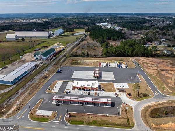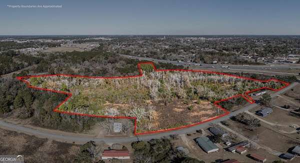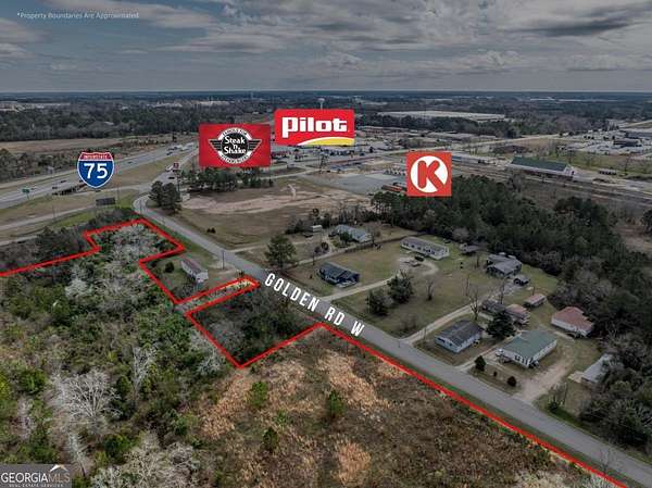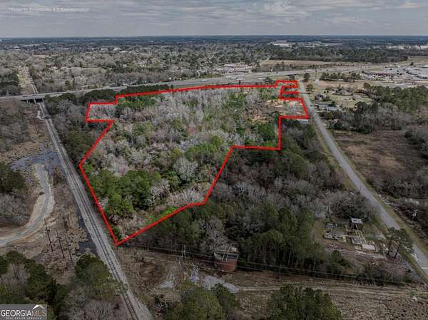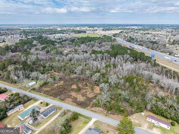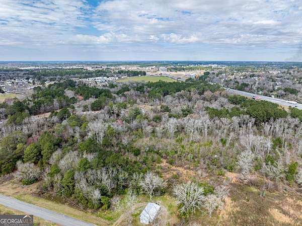 A large commercial lot, with high visibility from I-75, is located in Tifton, approximately 2.5 hours south of Atlanta and 45 minutes north of Valdosta, off Exit 60. It features road frontage connecting two major thoroughfares, HWY 319 S and I-75, along with paved road access on Golden Road and Jeffery Rd, as well as railroad frontage along the west property line. The property is equipped with electric, city water, and city sewer, with a nearby Georgia Power Hub. It is zoned Ag, allowing for various uses such as an RV park, mobile home park, solar farm, manufacturing, and self-storage.