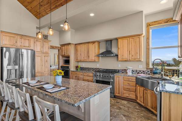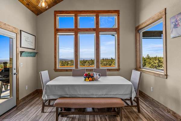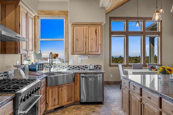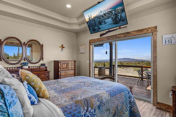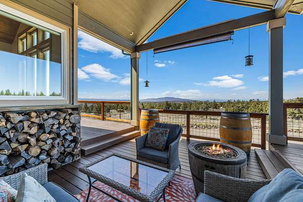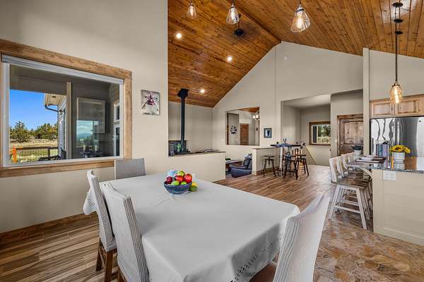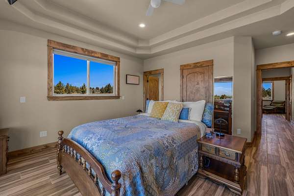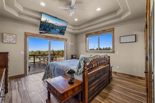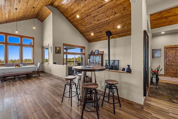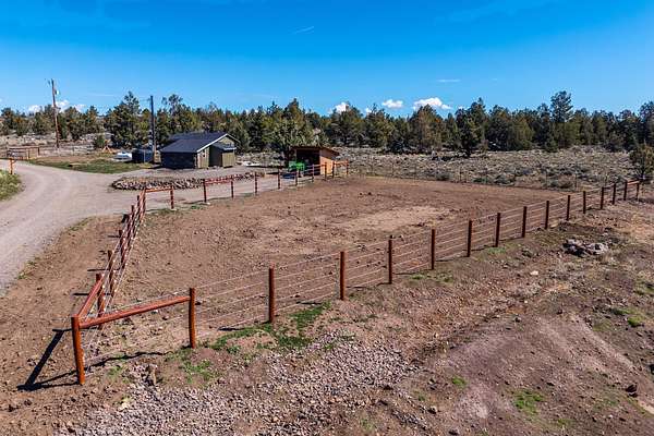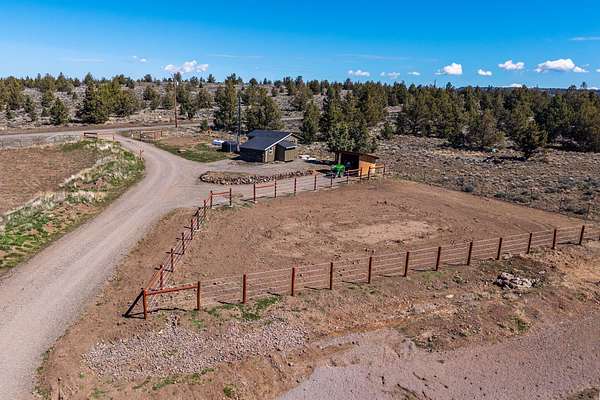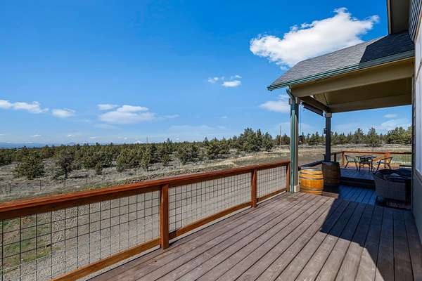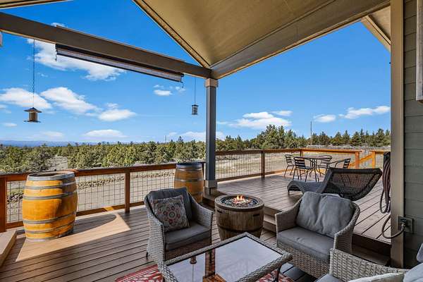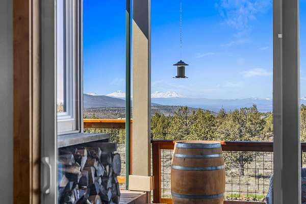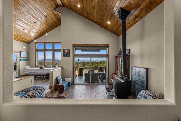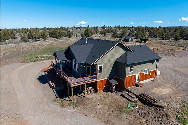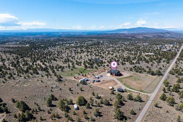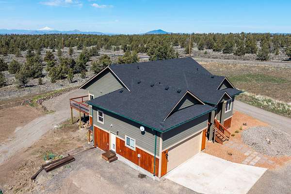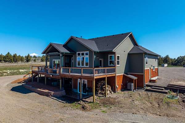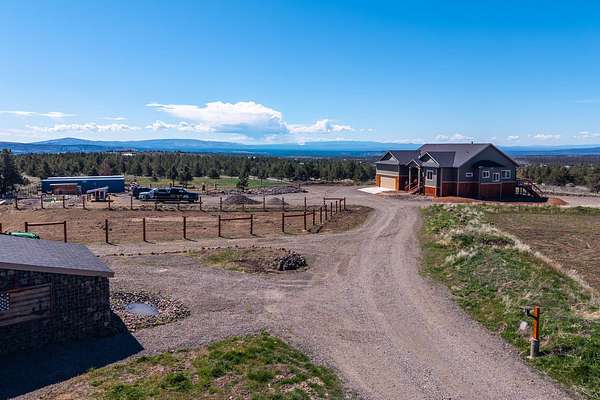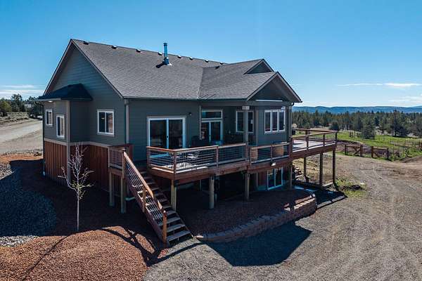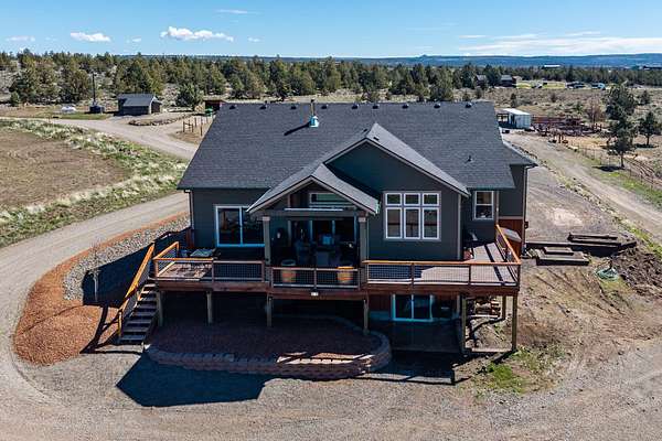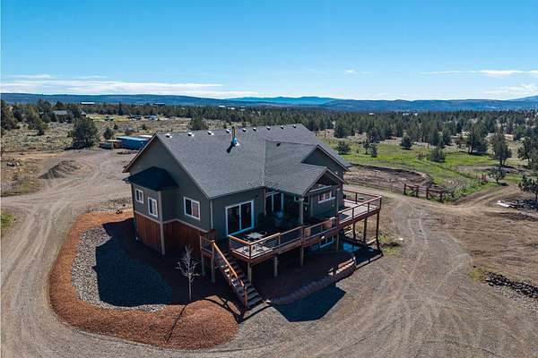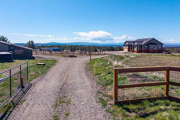 Enjoy sweeping mountain views from Mt. Hood to Broken Top on this private 10-acre retreat. This home features an open-concept design with vaulted T&G ceilings in Great room & Dining room with a certified wood stove anchoring the great room. The spacious kitchen is built for entertaining with a 6-burner propane range, double ovens, granite counters, hickory cabinetry, large island, & ample storage. The primary suite offers stunning views, walk-in closet, dual vanities, & a spa-like shower. Plank tile flooring runs throughout. The lower level includes a family/game room, full bath, & two bedrooms. Outdoor living shines with a wraparound cedar porch, 4 acres fenced with gated entry, horse corral, chicken coop, duck pond, & animal shelter with utilities. Upgrades include a tankless water heater, RV hookups with water & power, generous gravel parking, roof de-icing system & more. See Highlight Sheet for improvements! Country living just minutes from town for shopping & close to hospital!