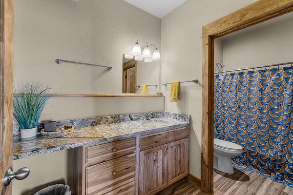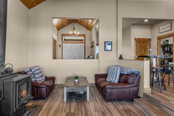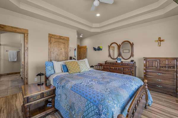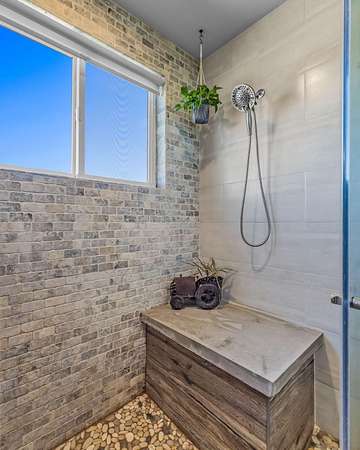 - Ceiling Fan(s), Central Vacuum, Double Vanity, Dual Flush Toilet(s), Enclosed Toilet(s), Granite Counters, Kitchen Island, Laminate Counters, Linen Closet, Open Floorplan, Pantry, Primary Downstairs, Soaking Tub, Stone Counters, Tile Shower, Vaulted Ceiling(s), Walk-In Closet(s), Wired For Data