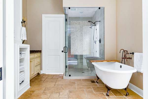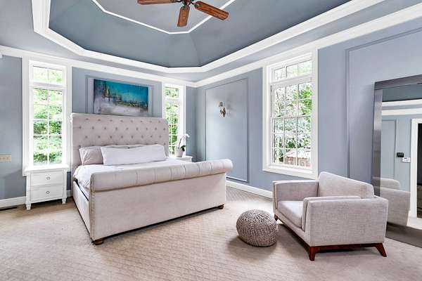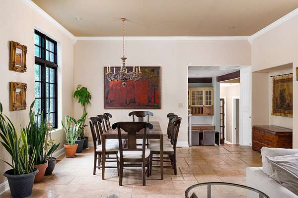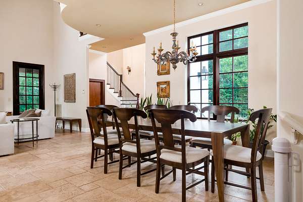 The design balances grand spaces with cozy rooms, nodding to classic European homes while staying grounded in practical comfort. From a formal dining room to casual gathering areas, every space has purpose and character.