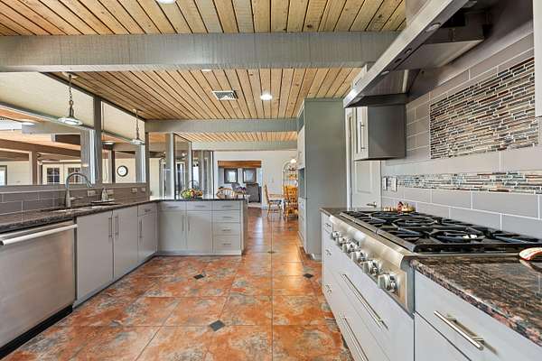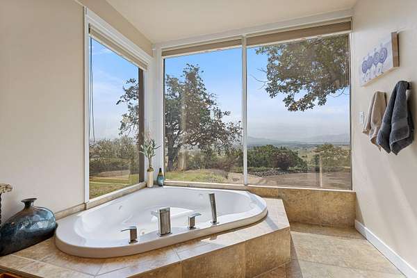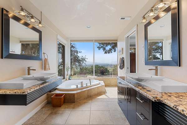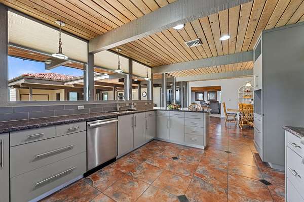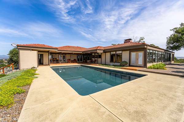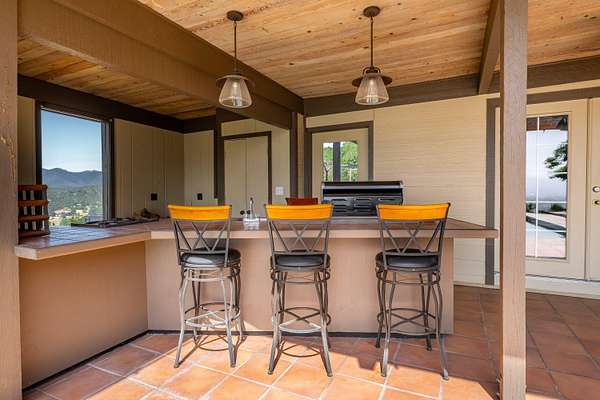 Mid-century modern elegance perched atop 20.36 private acres with breathtaking mountain and valley views!This stunning 4-bedroom,4-bath home features clean architectural lines,a unique indoor atrium that brings the outdoors in.The spacious kitchen has upgraded Thermador appliances and a view of the patio and pool so you don't miss the fun while cooking! The open living area is perfect for entertaining, flowing seamlessly to an incredible outdoor space with an inground pool, outdoor kitchen and spacious patio-deck. The luxurious primary suite offers a jetted tub, walk-in stone shower, dual vanities and a generous walk-in closet. The 1424 SqFt, 3 car finished garage with 3 phase power and added separate storage space will meet all your storage and car needs. With abundant RV parking and ultimate privacy, this one-of-a-kind property blends sophistication,comfort and natural beauty-your own mountain-top retreat awaits!