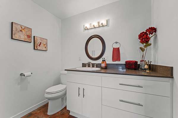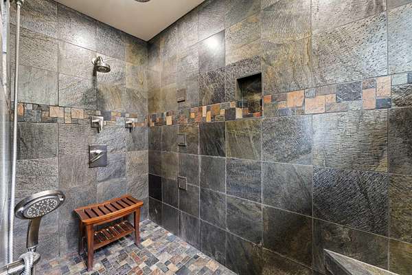 - Bidet, Breakfast Bar, Built-In Features, Ceiling Fan(s), Double Vanity, Granite Counters, Linen Closet, Open Floorplan, Pantry, Primary Downstairs, Shower/Tub Combo, Soaking Tub, Stone Counters, Tile Shower