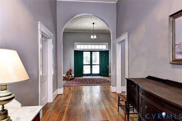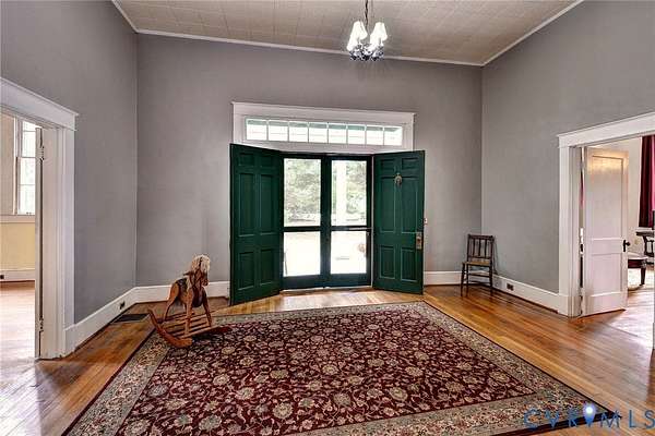 This spacious and captivating Essex County Historic Treasure features 12'-3" ceilings on the first floor. According to the 1940 edition of the Essex County Green Book, Woodbourne, located in Upper Essex County, was originally built around 1840 by William Brooke of Brookes Bank. The original home was of stately proportions with 12 spacious rooms, an observatory on the roof, and four tall chimneys. Sadly, the original house burned in 1928. A circa 1930 house was built upon the original basement and foundation, with the original chimneys salvaged and utilized in the construction of the 1930 house. An absolutely fabulous and serendipitous columned front Portico / Porch circa 1930, incorporates the broken marble mantles from the original Woodbourne. It is a truly striking feature of the property, which pays homage to the original Woodbourne. One of the most interesting interior features of this handsome home is the grand entrance hall, which leads to an arched opening and a center hall, extending through the length of the first floor, with its soaring 12'+' tall ceilings throughout! 9' ceilings on the 2nd Floor. Original and operational windows were restored (complete with chains and pullies) as well as several transoms and other architectural elements. Beautiful floors. Exterior siding is Cypress Shingle and Cypress Clapboard. Modern amenities include updated plumbing, wiring, laundry room, spacious full baths, and loads of storage space. Towering Ancient Magnolias and other ancient trees abound. Circular driveway is paved in addition to other parking areas behind the house up to the 1,350+ square foot Morton Metal Building, which can be utilized as a garage, equipment storage, or workshop. Although this property needs some cosmetic tlc, the offering of this very special property presents the opportunity to take this unique historic treasure to the next level. Ideally located off of U.S. 17 between Tappahannock and Port Royal. A must see historic treasure!