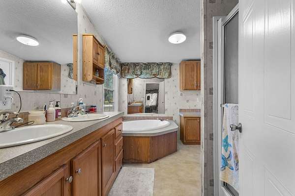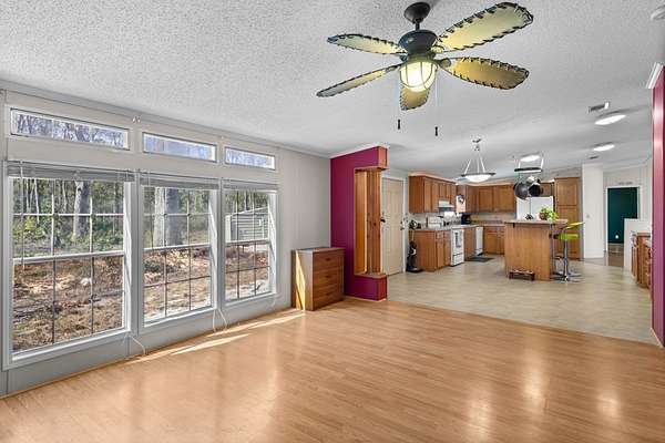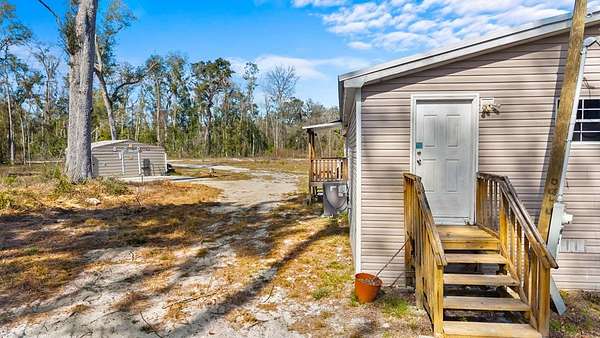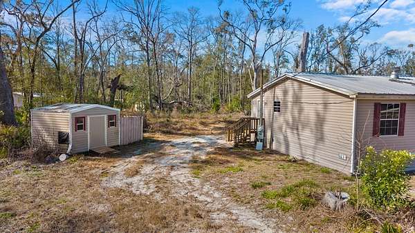 Welcome to this spacious 4 bedroom, 3 bathroom manufactured home nestled on 1.5 acres in Old Town, FL! Situated on a desirable corner lot, this property offers privacy, room to roam, and plenty of space both inside and out. Step inside to find crown molding throughout, decorative lighting, and a cozy wood-burning fireplace that anchors the living area. The kitchen is designed for gathering, featuring a large island with bar seating and ample cabinet space. The oversized master suite is a true retreat with a huge bedroom, garden tub, and an impressive walk-in closet. A convenient Jack and Jill bathroom connects the spare bedrooms, making it perfect for family or guests. You'll also love the massive utility room with plenty of storage and workspace. Outside, there's a shed for additional storage and plenty of room to enjoy outdoor activities. With the HVAC system replaced in 2025 & a metal roof, this home offers peace of mind and comfort for years to come.