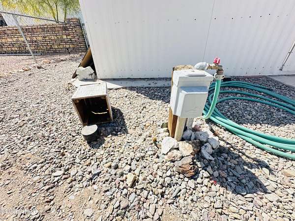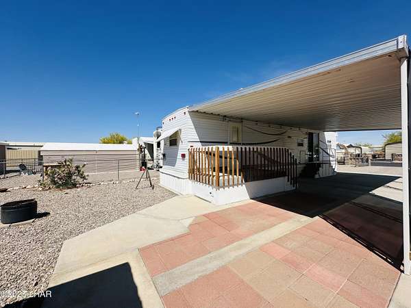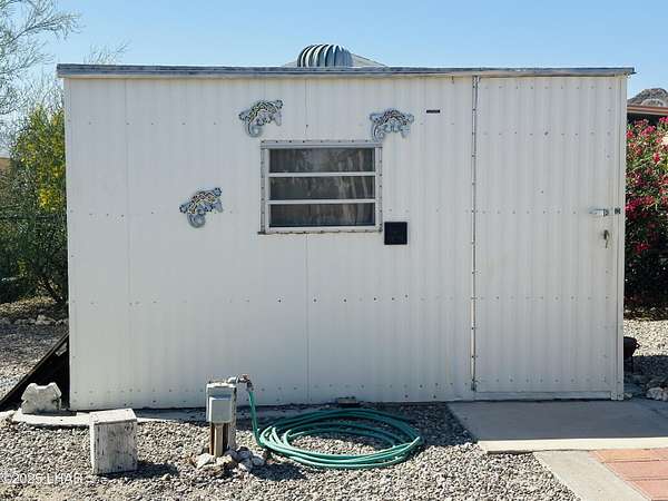 Nestled in Q Mountain Vista surrounded by mountain views, this vacant lot comes with a charming 2006 Hyline travel trailer (M1125880) that features a private bonus room, open floor plan, some furnishings and plenty of storage for all of your necessities. The property features a laundry shed - workshop, full RV hookup, backyard firepit and is fully fenced. There are two cactus gardens in the front yard bordered by beautiful Mexican brick fencing with a double rolling RV gate and arched man gate at the entrance. Water is paid to Q Mountain Vista HOA. Call today to schedule your private showing.
