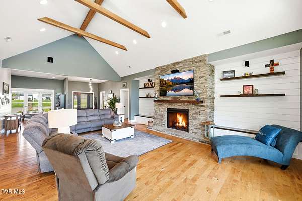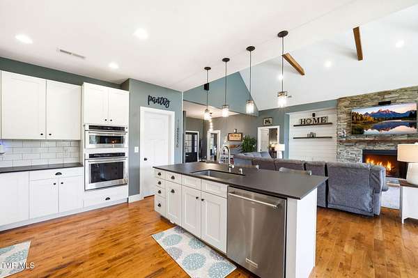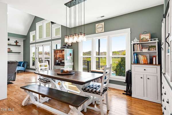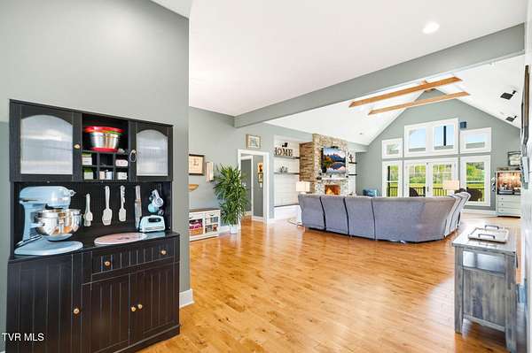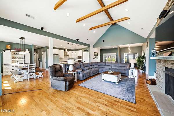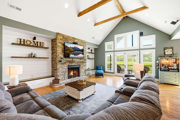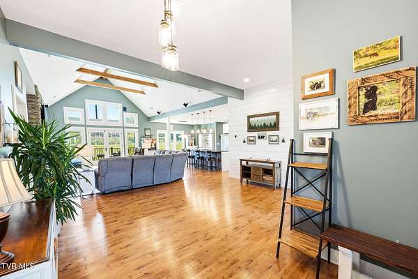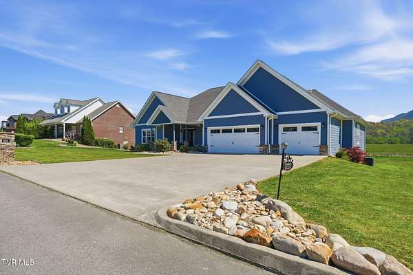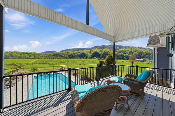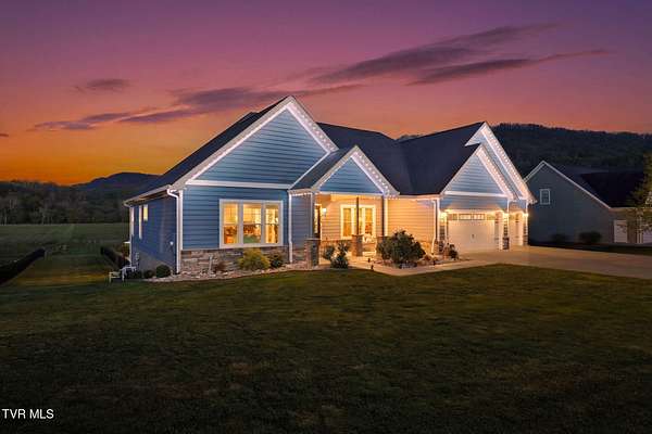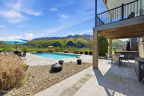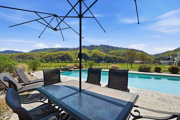 This is more than a home, it's a statement. Set along the scenic bend of the Holston River, this exceptional riverfront estate in River Bend Shoals offers nearly 9 acres of privacy, beauty, and refined living, all nestled at the foothills of the East Tennessee mountains with no HOA or restrictions, giving you the freedom to truly make it your own. Whether you're hosting unforgettable gatherings or enjoying quiet mornings with coffee in hand, the setting provides the perfect backdrop for every moment. With direct river frontage, you can stroll down your 8.96 acre property to your private dock for a peaceful escape on the water, or unwind poolside beside the heated saltwater pool, complete with a custom diving rock and cascading waterfall; your own personal retreat. Inside, soaring vaulted ceilings and expansive windows flood the home with natural light while framing breathtaking mountain and river views. The open-concept layout is both grand and inviting, designed for effortless entertaining and everyday comfort. Step out onto the covered deck overlooking the pool, rolling acreage, and riverfront scenery; an ideal extension of your living space. The kitchen is a true showpiece, featuring a gas range, convection oven, microwave drawer, and a generously sized pantry, all delivering a professional-grade experience. Enjoy both a formal dining room and a casual eat-in space for versatile dining options. Just off the entry, a dedicated office with newly installed built-ins offers both function and style, accompanied by a convenient powder room. The main-level primary suite is a private haven, complete with a spa-like en suite featuring a jetted tub, glass-enclosed shower, and an expansive walk-in closet. On the opposite side of the home, two spacious bedrooms share a full bath, while the nearby laundry room, complete with a folding counter, provides direct access to the three-car garage. Above the garage, a walk-up attic offers exceptional, easily accessible storage perfect for seasonal items and long-term organization without sacrificing living space. The lower level offers endless possibilities with flexible spaces for a home gym, craft room, additional bedroom, and a movie area with a pre-installed theater platform. A full bathroom serves the pool area, and walk-out access leads directly to your outdoor entertainment space. This level also includes access to a second garage. Extensive recent upgrades include brand new Energy Star windows, updated showers, lower-level HVAC, a new hot water heater, and pool enhancements including a heater and cover. The home is also outfitted with year-round exterior lighting, easily controlled from your smartphone. A rare opportunity to own premier riverfront living at 605 Church Lane--where luxury meets lifestyle, without limitations. IT IS THE SOLE RESPONSIBILITY OF BUYER AND BUYER AGENT TO VERIFY ALL INFORMATION CONTAINED HEREIN