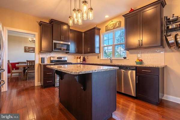 Welcome to this exceptional and immaculate 4 bedroom, 2.5-bath colonial set on over 2 picturesque acres in the award-winning Unionville-Chadds Ford School District, offering the perfect blend of modern design, thoughtful upgrades, and serene surroundings with no HOA restrictions. From the moment you arrive, the home's curb appeal and peaceful setting on a lightly traveled road set the tone. Step inside to a bright, two-story Foyer enhanced by custom shiplap detailing, creating an immediate sense of warmth and style. The main level features a desirable open floor plan with abundant natural light and newer hardwood flooring throughout most of the first floor. The heart of the home is the beautifully appointed Eat-In Kitchen, complete with granite countertops, a center island, sleek cabinetry, recessed lighting, pantry, pot rack, and stainless steel appliances including a gas range - perfect for both everyday living and entertaining. The Kitchen flows seamlessly into a spacious Breakfast Area with sliding glass doors to the rear deck offering amazing views of the bucolic countryside out back, and access to the stunning Family/Great Room with soaring cathedral ceilings and a cozy gas fireplace. Additional main-level highlights include formal Living and Dining Rooms enriched with hardwood flooring, custom moldings, and refined finishes added by the current owners, as well as a private Office with French doors - ideal for today's work-from-home lifestyle. A convenient Mudroom/Laundry Room with interior access to the 2-car garage completes the first floor. Upstairs, retreat to the spacious Primary Bedroom En-Suite featuring a tray ceiling with ceiling fan, walk-in closet, and a luxurious en-suite Bath with a soaking tub, dual vanity, and separate shower. Three additional generously sized bedrooms share a well-appointed hall bath. The 4th Bedroom even has its own sitting room! The second floor also features brand new carpeting (2024), offering a fresh, move-in ready feel. The full basement provides excellent potential with high ceilings and legal egress, ready to be finished for additional living space if desired. Outside, enjoy the expansive deck overlooking a sweeping backyard that backs to an amazing open space, showcasing breathtaking views of the Brandywine river valley. Enhancing both function and charm, the sellers have added a shed and barn (2019), ideal for storage, hobbies, or outdoor enjoyment. Additional upgrades include a full interior repaint (2019), extensive wainscoting and trim enhancements (2021), and a newer water heater (2021), giving buyers peace of mind and a truly turnkey experience. With nearly 3,000 square feet of living space, thoughtful updates throughout, and a flexible settlement timeline, this home offers a rare opportunity to enjoy space, style, and location all in one. Enjoy all the perks of country living while still accessing everything easily at your fingertips: all kinds of shopping and dining in nearby towns of West Chester and Kennett Square, easy access to parks and trails including Longwood Gardens, and a short drive to major routes for commuting. Don't miss your chance to make it yours!