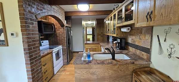 Est $6,901/moMarc B Hitchcox, NextHome Virtual, C: 970-729-3055, hitchcoxrealestate@gmail.com, www.crenmls.com: Classic colorado mountain cabin feel on 2.57 irrigated acres in the sunny Idlewild subdivision between Ouray and Ridgway. Nice views from the private porch and balcony off the primary bedroom which boasts a separate shower and jetted tub. Beautiful kitchen with separate dining area and direct access to deck dining. Studio apartment in the garage building could be an office, craft room, or workout/yoga space. County regulations also allow for home business. 2.57 acres has plenty of room for toys, animals, or out buildings. This is a true slice of Colorado.
