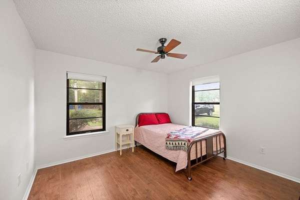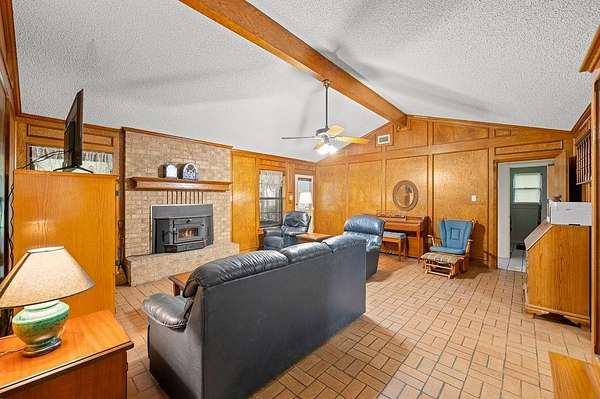 Welcome to your own peaceful retreat! Tucked away on 2.5+ serene acres just outside the city limits, this charming 4-bedroom home is surrounded by towering, shady trees that offer natural beauty and privacy in every direction. Whether you're looking for space to spread out, work from home, or simply escape the hustle of town (while still being just a short drive away), this property delivers the best of both worlds. Step inside to find a warm, inviting interior featuring a wood burning fireplace with insert, fresh paint throughout, and beautifully updated epoxy countertops. The Jack-and-Jill combo makes for a perfect master suite setup or flows easily to the second room that makes a great home office if remote work is on your radar. New flooring in all the bedrooms adds to the clean, fresh feel of the space. Lots of storage in the laundry room area. Enjoy the screened-in covered patio, perfect for sipping coffee while taking in the breeze and views of your tree-dotted acreage. A wood-burning stove in the homes workshop area, with two AC window units, complete with roll-up door access, keeps things cozy during winter or summer projects. Additionally the workshop has a lean-to behind. There is a carport and a water well house. The main water well supports watering the sprinklered yard, and also has a second well with a hand pump station for fresh water needs! This is more than just a home, it's a private sanctuary with room to breathe, grow, and live your ideal lifestyle. Schedule your showing today and experience the charm for yourself!