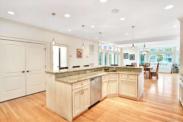 Exquisite Oceanfront Masterpiece! Indulge in the epitome of waterfront opulence at this sprawling Mediterranean estate on the legendary Dune Road, where 174' of ocean frontage and uninterrupted Atlantic vistas unfold across a meticulously manicured 1.69 acre sanctuary. Crafted in 2006 as a private Hamptons haven, this 4,500-square-foot, 5 bedroom, 6 bath architectural gem bathes in natural luminescence, its open and expansive, light-drenched interiors evoking the serenity of a world-class resort while delivering the intimacy of a bespoke legacy. Step into a symphony of seamless sophistication with an open-concept floor plan that redefines coastal grandeur. The heart of the home is a culinary atelier worthy of Michelin acclaim-a chef's kitchen adorned with state-of-the-art Sub-Zero, and Viking, appliances, cascading granite countertops, and custom cabinetry that marries form and function in effortless elegance. Flowing adjacently are dual palatial living spaces: a grand salon for intimate gatherings and an oversized great room crowned by a majestic stone fireplace, where flickering flames dance against panoramic ocean horizons. Ascend to the second level, where dual primary suites await as private sanctuaries of unparalleled luxury. Each features spa-like marble ensuites with soaking tubs, rain showers, and heated floors, ensuring rejuvenation at every turn. A fireside den/library serves as a refined retreat for contemplation or conversation, while three additional guest suites-each with its own en-suite sanctuary-offer sumptuous privacy. Outdoors, the estate transcends mere grounds to become an al fresco Eden. Enveloping the heated gunite infinity pool and bubbling spa is a vast expanse of premium mahogany decking, evoking the decks of a superyacht under the Hamptons sun. Lush landscaped terraces, whispering sea breezes, and a discreet, meandering boardwalk lead directly to your private ribbon of dune-backed beach, where the rhythm of the waves becomes your daily symphony. This is more than a residence-it's a legacy of lavish living, a RARE FIND and where every detail whispers exclusivity and every sunset heralds renewal. Secure your slice of eternal summer; inquiries invited for this irreplaceable Dune Road icon.