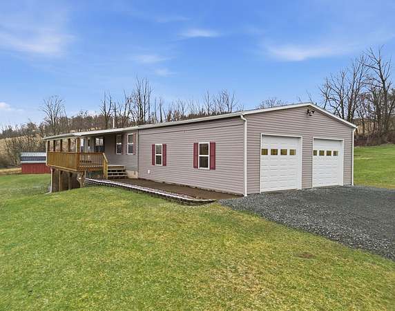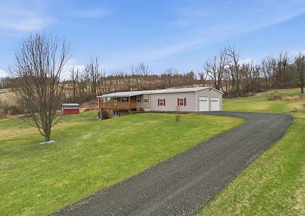 Well-maintained 2009 double-wide home set on a full Superior Walls walk-out basement, offering comfort with future expansion potential. This 3 bed, 2 bath home features an open-concept layout with a spacious kitchen, center island, and seamless flow into the main living areas. The fully insulated basement offers 9-foot ceilings, plumbing for an additional bath, and great potential for added living space or a workshop. Recent updates include a high-efficiency gas furnace, central air, secondary furnace for two-zone heating, 200-amp service, water softener, and septic servicing. The attached oversized 2-car garage is fully insulated with electric openers. Situated on 1.99 acres, the property offers a private setting with an expansive yard and chicken coop providing space to enjoy both inside and out. Sellers Disclosure/OGM/LBP will be uploaded 4/1/2026.