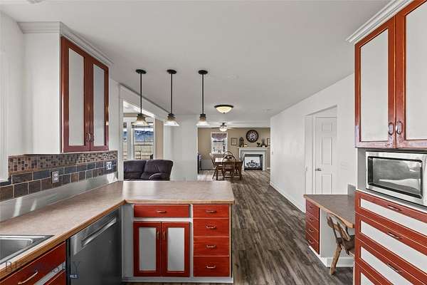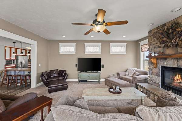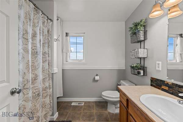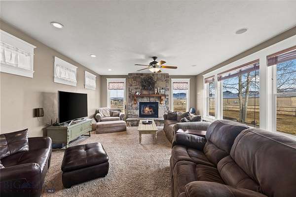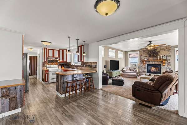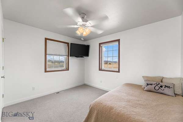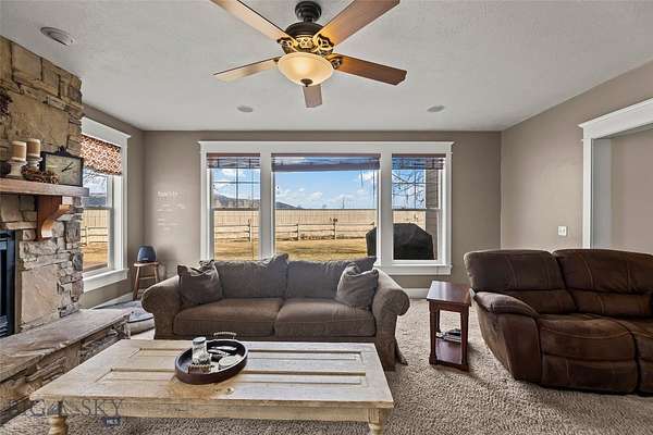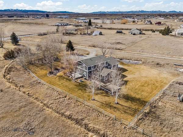 605 E Cameron Bridge is a 2,500-square-foot, three-bedroom, two-and-a-half-bath home on 5.22 acres northwest of downtown Bozeman. Built in 1992 and well maintained, it sits with a southern exposure that frames farmland and mountain views across open sky, with no HOA and livestock permitted. The main level runs 1,500 square feet and is laid out for real use. The kitchen, dining, and living areas connect without feeling forced, anchored by a gas fireplace in the living room. A den or office sits off the main space, laundry is on this level, and the half bath is here too. Engineered wood and tile make up most of the flooring. Forced air gas heat and central AC. The kitchen is stocked with what it needs: range, refrigerator, dishwasher, microwave. Upstairs, all three bedrooms sit together on the second level, including the primary. Both full baths are up here, with walk-in closets throughout. The layout keeps the living and sleeping spaces cleanly separated. Outside, the property has a covered deck, an open deck, mature trees, open lawn, a shed, and partial fencing already in place. A ditch runs the property. Gravel drive off E Cameron Bridge with dirt road access. The 2-car attached garage adds another 575 square feet. 5.22 acres with southern exposure. Private well and septic. Livestock permitted, no HOA. 2-car attached garage. $3,624 in 2025 taxes. Ten minutes to the airport. Ten minutes to downtown.