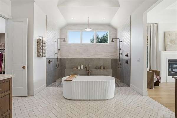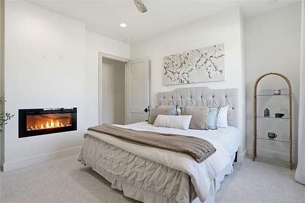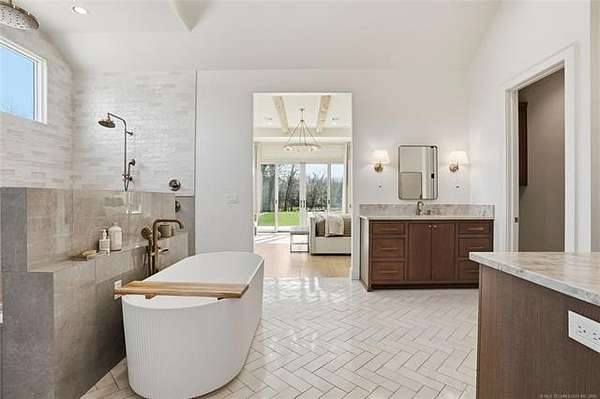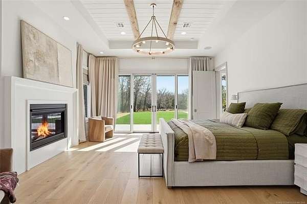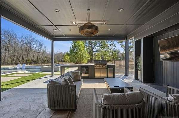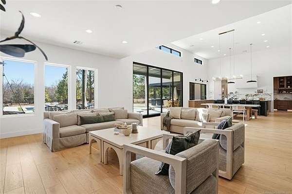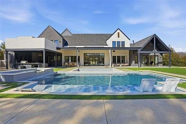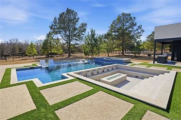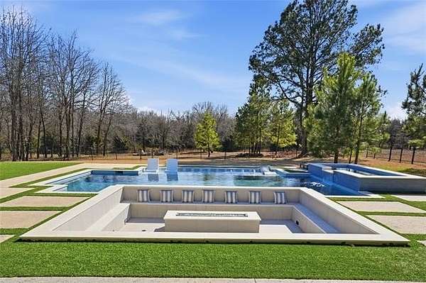 Experience unparalleled luxury in this exceptional retreat set on 7.63 private, wooded acres. This newly built, fully customized 5-bedroom, 4.1-bath residence offers a seamless blend of transitional modern design and warm, elegant earth tones. Surrounded by breathtaking forest views, the property provides both tranquility and limitless potential, including prep work already completed for an additional outbuilding. Outdoor living is elevated with a sparkling saltwater pool, oversized 15' spa, sunken fire pit, a 20' outdoor fire ring, 9 infrared patio heaters, and a full outdoor kitchen-perfect for year-round entertaining. Enjoy an immersive experience with a wired indoor/outdoor speaker system and multiple spaces designed for gathering and relaxation. Inside, designer finishes define every room. The gourmet kitchen showcases high-end appliances, marble and granite surfaces, separate prep kitchen and exceptional craftsmanship. A spa-inspired primary suite, home gym, and thoughtfully curated details throughout ensure comfort and style at every turn. Additional acreage at the street is available. This is more than a home; it's a private sanctuary built for those who appreciate luxury, design, and extraordinary living.