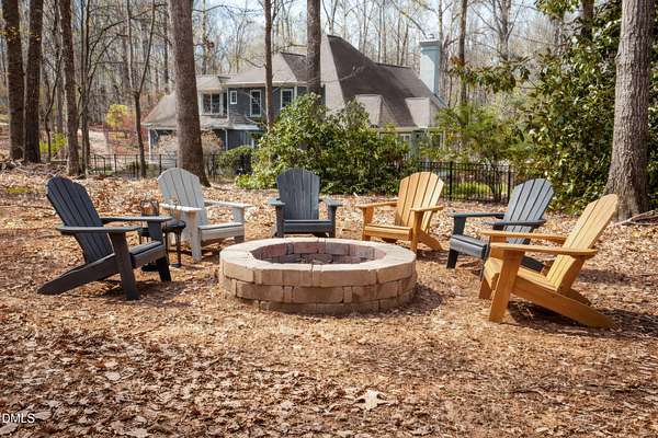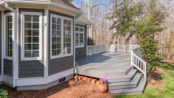 What an unique neighborhood- quiet and away from the hustle and bustle of city life, yet a community with all the amenities that one needs. This house provides the perfect home for the enjoyment of all that Hardscrabble has to offer! Situated on a large wooded and private lot, this three bedroom residence is designed with an abundance of thought to flow and space utilization. There is a comfy living room with a fireplace opening to a dining room. The family room, also with a fireplace, overlooks a large deck and flows to the breakfast nook and kitchen. This is truly a chef's kitchen! High end appliances and tons of cabinet and counter space. The primary suite is on the main level, and two secondary bedrooms are up. Storage will never be an issue in the house, as there are two walk-in attic areas, The deck overlooks a landscaped fenced backyard. Orange Co. schools. Everything you need.