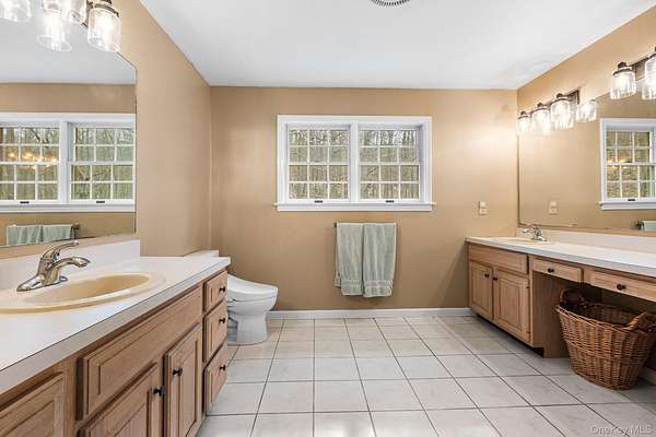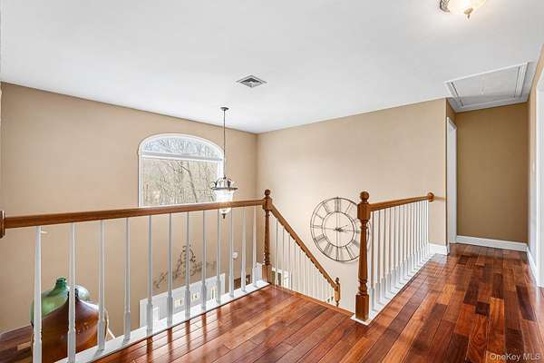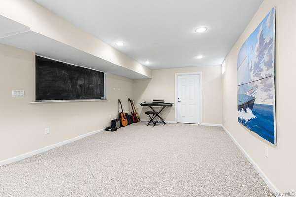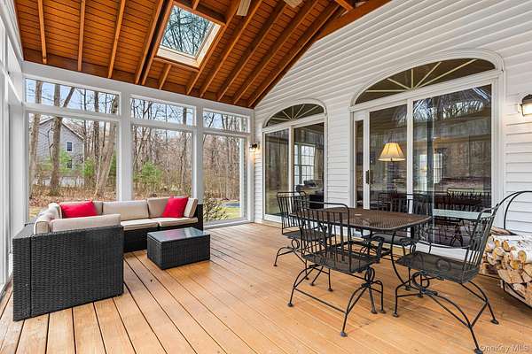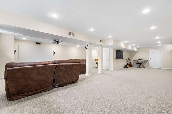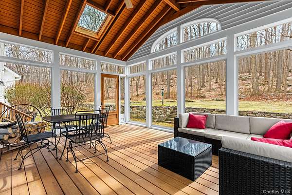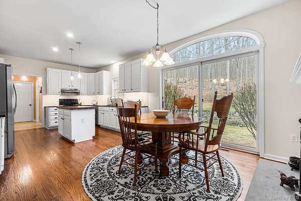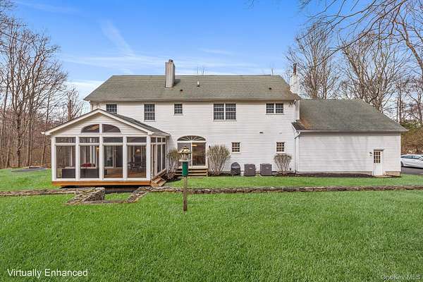 This well-maintained home offers a thoughtful blend of indoor comfort and outdoor appeal. The backyard is a standout feature, highlighted by classic stone walls, a custom stone fire pit (2020), and an in-ground trampoline-ideal for recreation and entertaining. Backing directly up to the Appalachian Trail, the property offers convenient access from the backyard. A screened-in porch, added in 2016, provides a relaxing, sheltered space to enjoy the outdoors and is enhanced by two skylights that fill the area with natural light. Inside, the finished basement expands the living space with a bright and functional layout, complete with windows, a media area, a dedicated exercise space, and a finished storage room-perfect for a variety of uses. Recent updates enhance both style and peace of mind. The kitchen was remodeled in 2025 with painted oak cabinetry, granite countertops, a black walnut butcher block island, tile backsplash, wood flooring, and a Bosch dishwasher. A double-sided fireplace creates a warm, inviting connection between the living room and kitchen. Additional improvements include a new driveway (2013), new garage doors (2025), and a recently installed oil tank in the basement (2026) with removal of the prior underground tank. The primary bathroom has also been refreshed in 2026 with updated paint and upgraded vanity lighting. A well-cared-for property offering a balance of updates, usable space, and inviting outdoor features.