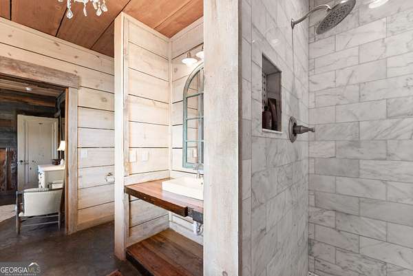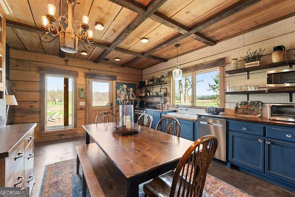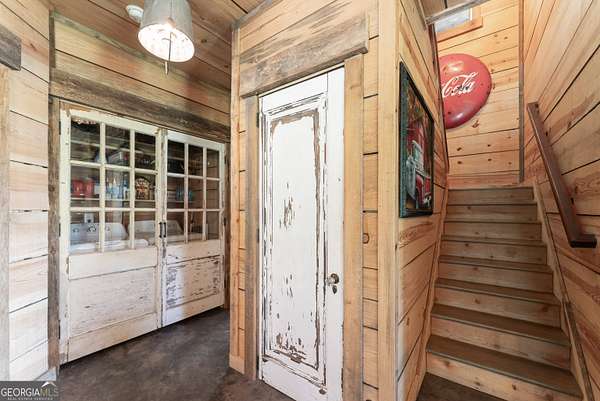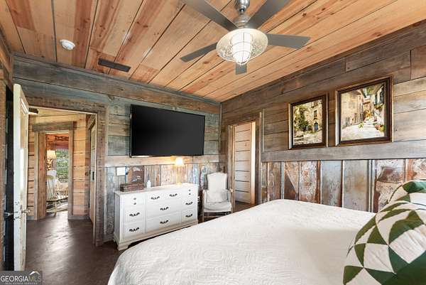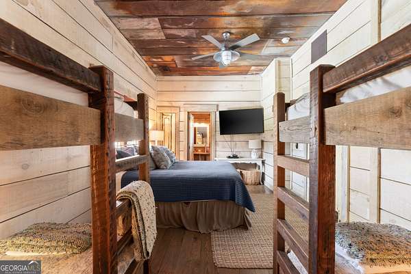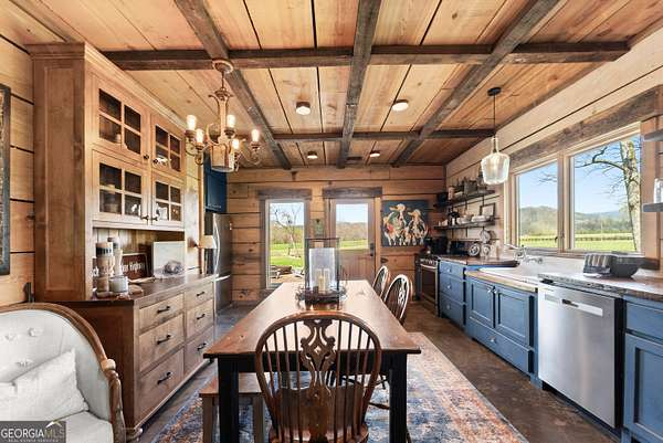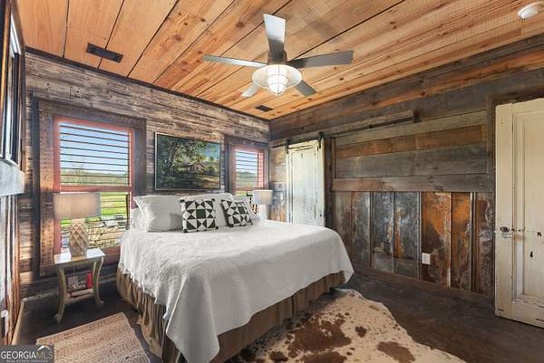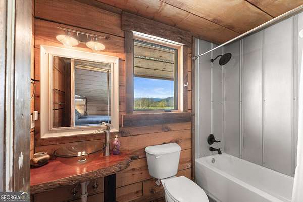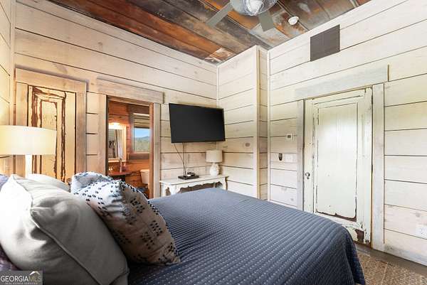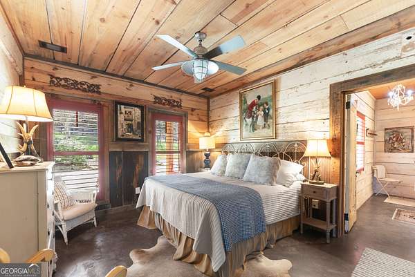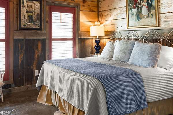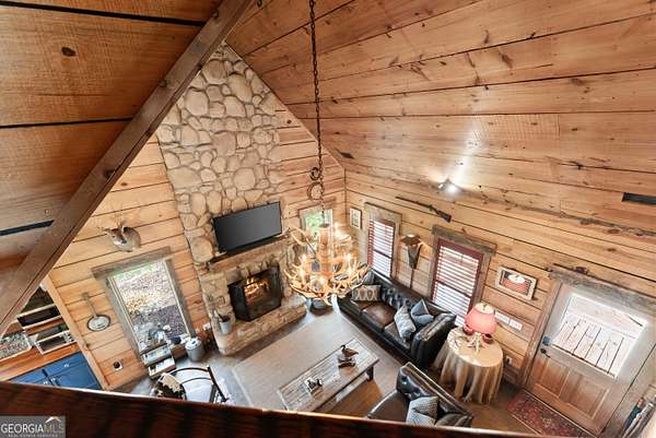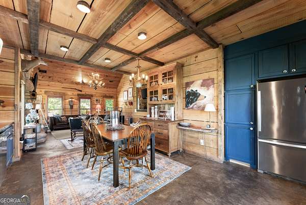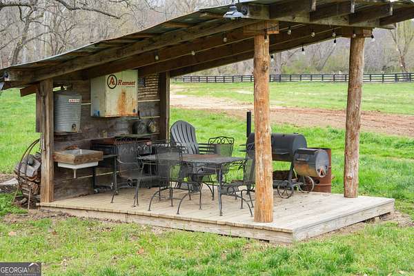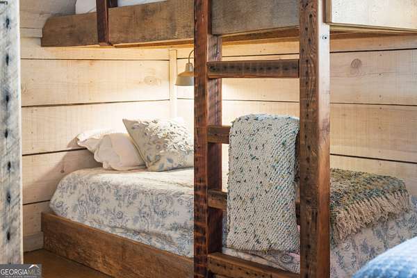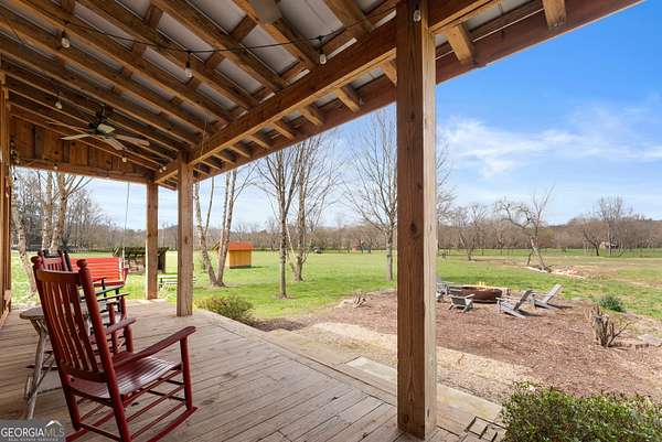 29 Acre Farm with 3BD, 3BA Luxury Cabin, 2000 Ft of Sautee Creek Frontage, and Incredible Long Range Mountain Views! Located in the Sautee Valley on scenic Lynch Mountain Rd, this property offers a very rare combination of mountain views, excellent fishing and hunting, and usable farmland acreage. Recreational opportunities abound with easy and direct access to Sautee Creek with riffles and runs perfect for excellent trout fishing and a short float to the confluence with the Chattahoochee River. Beautiful sprawling fields offer opportunities for planting, cattle and livestock, or even hunting and dove shoots. The cabin reflects authentic craftsmanship and heritage design, incorporating white pine siding, beams, and posts milled locally, along with heart pine interior elements sourced from an 1865 Charleston Victorian home. Interior doors were reclaimed from a historic Athens residence, and custom lighting fixtures further enhance the home's distinctive character. The main living area features a vaulted ceiling, river rock stone fireplace, and stained concrete flooring, opening to a rustic kitchen with pine countertops and farmhouse sink. Two primary bedrooms are located on the main level, each with access to full baths featuring tile showers and natural wood finishes. The upper level includes a bunk room with en-suite bath, finished with rough-hewn wood walls and tin ceiling accents. Outdoor living includes covered rocking chair porches positioned to take in views of open fields and surrounding mountains, along with gathering spaces ideal for entertaining near the water. Additional improvements include an equipment barn, a separate river cabin with bunks, and a river pavilion positioned to enjoy the sounds and private setting of the creek. Located minutes from the Sautee Nacoochee Center for the Arts, Old Sautee Store, and Harvest of Habersham and convenient Uniqoi State Park, Helen, and Clarkesville. Only 90 miles from Atlanta!