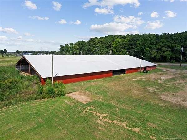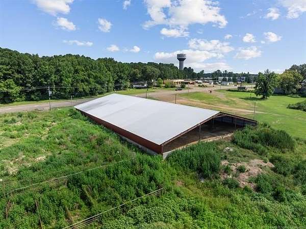 Terrific and unique commercial real estate investment opportunity offered for sale. Situated in a high traffic, high visibility location along NE Lincoln Rd/Bypass 70/259, a primary route taken to the popular Beaver's Bend/Hochatown area, this recently remodeled 33,464 square foot building (per McCurtain County tax assessor) known as the former Idabel livestock sale barn now is comprised of mostly an open-end warehouse style space that can be modified to fit a multitude of uses, along with interior office/storage spaces on both lower level and upper level (not pictured) plus restrooms. The property is approximately seven acres with exact acreage to be determined upon completion of a boundary survey at Seller's expense. Call for additional details or to schedule a property tour. NOTE: Aerial images show parts of property owned by Seller and other landowners that is not included in what is for sale. Contact agent for outline of approximate boundaries.