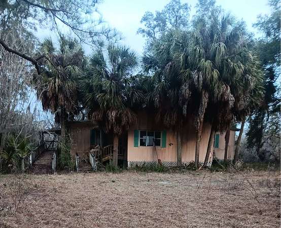 Real Estate Auction will be conducted on April 18th at 10am. This home is in need of removal or rebuild ."AS IS AUCTION CONTRACT" is to be used and can be obtained from listing office for any offers. Zoning is A3 and ESA 2 per Columbia County zoning department. Well, septic and power pole are present- no idea the condition Inground pool , chain link fence former FCC licenses for Earth Station Price reflects Auctioneers suggested starting bid. Please obtain Buyer's packet from list agents office- 2 small sheds with half roof over being sold seperately . The large RV barn with 2 car carport and other shed by communications tower convey with the property.