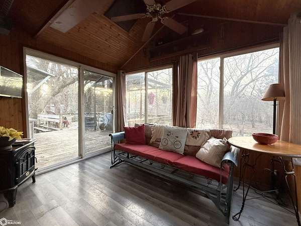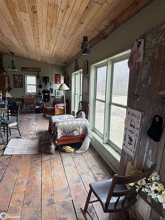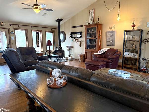 A Legacy of Craftsmanship & Riverfront Serenity Rarely does a home with this much soul come to market. Hand-crafted by its one and only owner, this 2-bedroom, 1.25-bath residence is a labor of love. Inside, the open-concept kitchen and living area are anchored by stunning repurposed built-in cabinets and handrails reclaimed from the original Northwood-Kensett school-a beautiful piece of local history preserved forever within these walls. Walk out onto the rear deck to survey your private woods or follow the path down to your 50' of Shell Rock River frontage. There, you'll find a rustic riverside cabin-the ultimate "off-the-grid", sanctuary for late-night campfires and escaping the noise of the modern world. For the hobbyist or the dreamer, the work shed is a standout feature, offering a dedicated shop space paired with an attached "retreat room"-perfect for a studio, meditation space, or a quiet office. Complete with an additional storage shed for all your gear, this property offers the privacy you've been searching for without sacrificing the comforts of home.