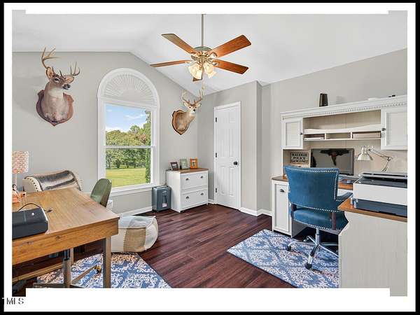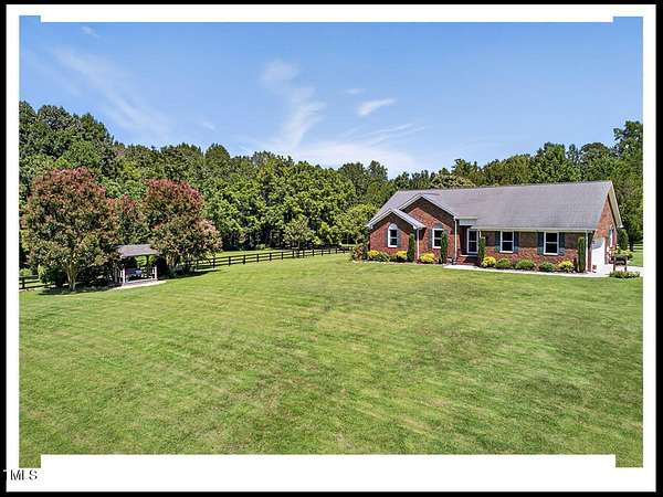 Set amid open sky and whispering trees, this 18-acre horse property invites a life well-lived. A rare and radiant retreat for horse lovers- gentle rolling lands, where every detail honors land, animals, and the rhythm of farm life. Features to highlight include a quarter-acre stocked pond, a 4-stall barn with hot water, tack room, fly spray system, and motion sensor fans. Additional extras include a 2 stall run-in shed, 14 ft wide by 48 feet deep & 10 feet high carport lean to ideal for an RV, farm equipment, or a horse trailer. You will also love the powered workshop, additional carport, two sheds, greenhouse, 3 separate fenced pastures, chicken coop with egg-laying hens, and a single rooster. And now that you know the animals needs will be covered , also included is the single-level brick, three-bedroom home (one room currently used as an office). The spacious primary suite is enviable with heated bathroom floors, dual sinks and a walk-in shower. Zero carpet and smooth ceilings are also a plus. On-demand Rinnai Water Heater enables propane efficiencies. Persimmon and walnut trees grace the property. Tractor and zero-turn John Deere mower may convey. Please contact your favorite agent to view the home or stop by one of the scheduled open houses. Be sure to check out the two 3D tours linked to see the home and barn.