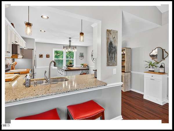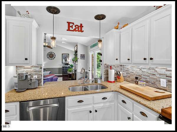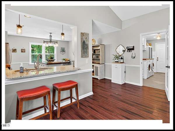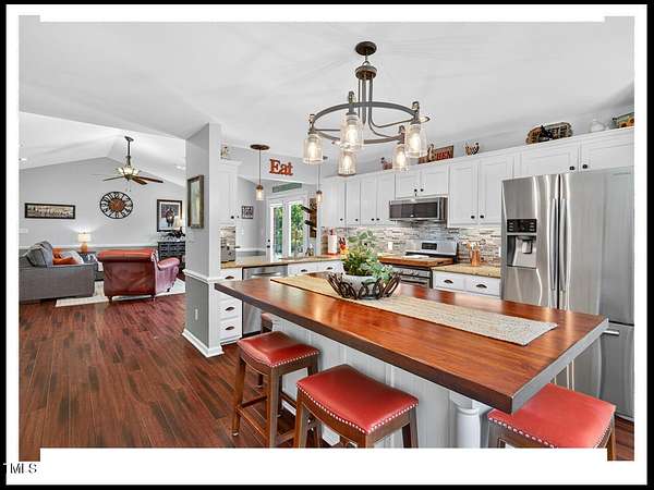 - Bar, Bookcases, Cathedral Ceiling(s), Ceiling Fan(s), Dual Closets, Eat-In Kitchen, Entrance Foyer, Kitchen Island, Kitchen/Dining Room Combination, Living/Dining Room Combination, Open Floorplan, Pantry, Primary Downstairs, Separate Shower, Smooth Ceilings, Walk-In Closet(s)