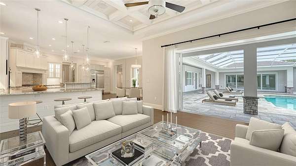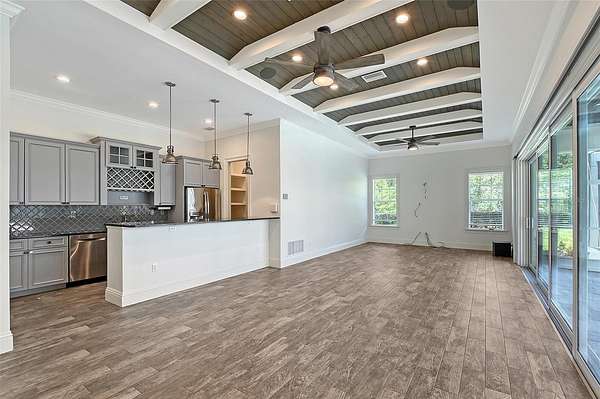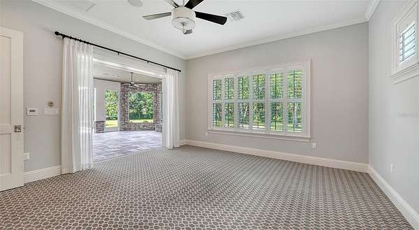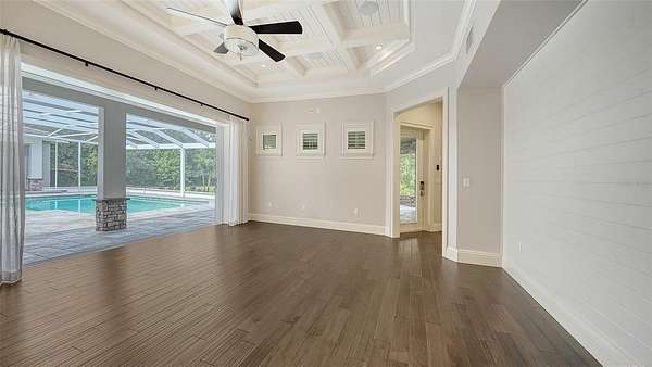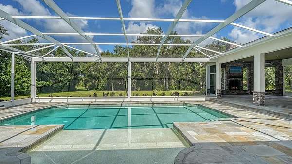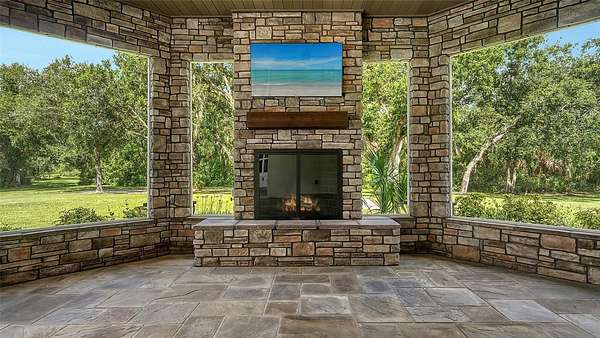 Experience the pinnacle of country living in the exclusive, gated community of Saddle Oak Estates. Perfectly positioned on 5 high and dry acres, this custom-built estate--constructed by the owner/contractor--combines enduring craftsmanship, elegance, and privacy in one of Sarasota's most desirable equestrian neighborhoods. Crafted with poured concrete walls and enhanced by hurricane-impact doors and windows, this residence is as solid as it is stunning. The interior showcases exceptional design with custom-trimmed walls and ceilings. wood flooring throughout, and thoughtfully integrated built-ins. The Dining Room, Living Room Room and Family Room feature beautiful accents of tongue-and-groove paneling. A chef's kitchen features a 48" refrigerator, gas stove, and gas appliances, all powered by a 500-gallon underground propane tank. Comfort is assured year-round with a 36kW whole-house generator, tankless water heaters, sprayed foam roof insulation, and exterior block walls filled with 3/4 " rigid board insulation. The home features both gas and wood-burning fireplaces, a whole-house sound system, security system, and dramatic tree lighting that enhances the ambiance.