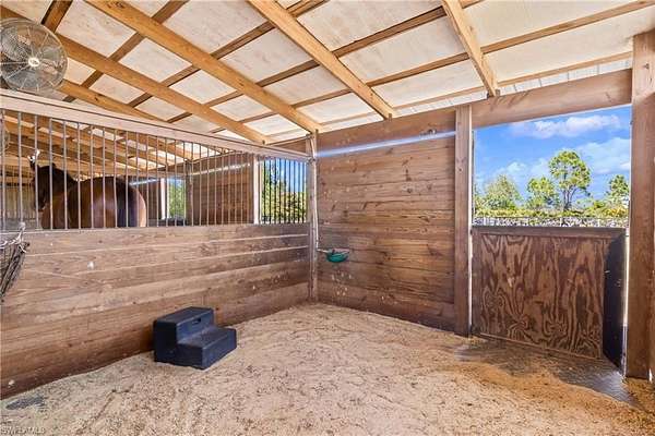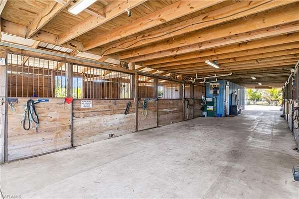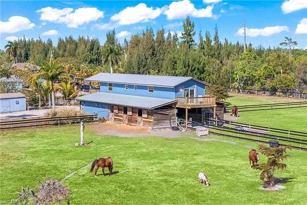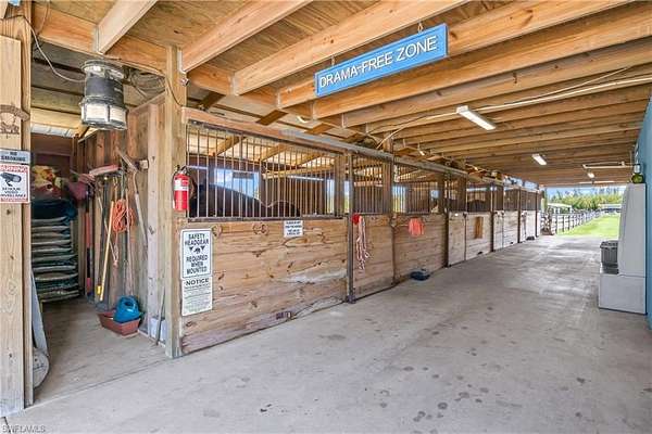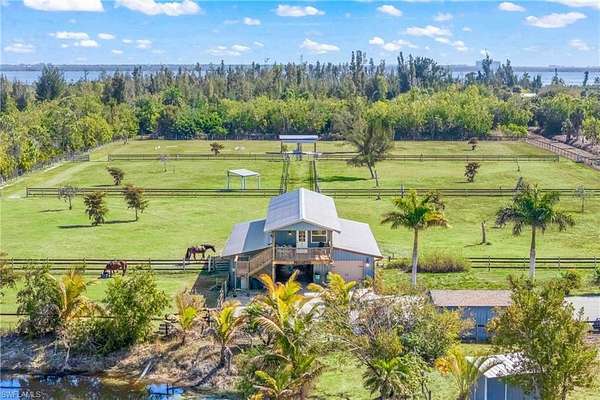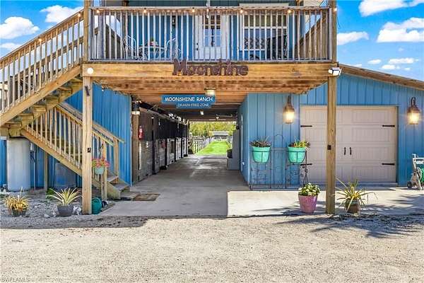 LOOKING for a Florida HORSE facility? Moonshine Acres Tropical Horse Farm, is an equestrian BARNOMINIUM property that has sanctuary for both horses and their riders alike on Pine Island FL. Located on a private double gated entry off Stringfellow Road, this 8.85 acres of land is YOUR opportunity to own and grow your business which could include boarding, lessons, training or expand to trail rides and breeding too. A completely HORSE fenced property that backs to 12 miles +/- of trails that lead directly to Gulf waters to swim HORSES. Eight expansive and adjoining paddocks, 8 of which are interconnected for uninterrupted movement, plus a dedicated paddock designed for specialized care (a total of 9). Providing a safe and comfortable environment for your horses to enjoy. Riders wanting to ride and enjoy their horses or peaceful leisurely rides, the property is equipped with a Regulation Small-Size Dressage Arena that ensures the ideal setting for training or casual riding. At the heart of the farm is a professionally designed barn, laid out to meet equestrian standards. The barn houses 8 spacious stalls, each outfitted with automatic watering systems and cooling fans to ensure comfort for horses. Tack Room offers ample storage for all your riding gear, a private bathroom and a Feed Room. The barn also includes a comfortable updated 2-bedroom, 1-bathroom Living Quarters, kitchen and 2 balconies with tremendous farm views! This BARNDOMINIUM is a perfect home for on-site care or staff. The HORSE property is equipped with additional structures, including a hay shed, a 30' x 50' workshop, and a carport large enough to accommodate RVs or horse trailers. There is a run-in shed and convenient wash stalls. You will see the property offers the potential to build your custom Florida dream home, tailored to your specific equestrian lifestyle and preferences. Moonshine Acres is more than just a farm; it is an established, successful business address. The idyllic setting of Pine Island also provides easy access to the Gulf of Mexico, offering water sports, fishing, and beach outings. This is a beautiful equestrian paradise for horses and riders, coupled with the laidback lifestyle of Southwest Florida's Gulf Coast. This also has many other potential uses including rezoned commercial use, Public storage facility, RV and Boat storage, a must-see consideration for investment.
