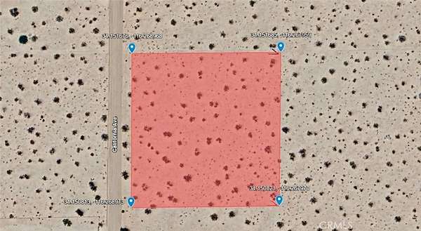 Est $223/mo2.18 acres zoned Residential Vacant Land ready for your vision. Land parcel identified by APN:0605-043-02-0000. No situs address assigned by county; address shown is for MLS input only. GPS coordinates: 34.151248, -116.268468. Buyer to verify zoning, permitted uses, and utility availability.