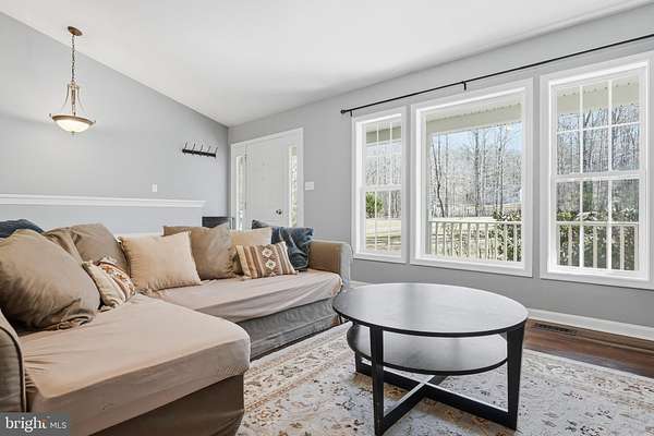 This cozy country home sits nestled in a quiet woodland setting and feels miles away from it all, yet is only about 20 minutes from Warrenton and about 25 minutes from Culpeper. The home is ideally positioned on its 3.06 acres, taking advantage of the privacy provided by the woods and also set well back from the road. A broad front porch welcomes you to sit a spell and listen to the birds sing. Inside, a light and airy open floor plan awaits. Cathedral ceilings and lots of windows let in views of the surrounding trees and the expansive front lawn. The living area is anchored by a propane fireplace with a classic dentil molding mantel. There are French doors that lead out from the dining area onto the back deck. The kitchen is open to both the living area and the dining area, and features whitewashed-look cabinetry and a double sink. Rounding out the main floor is the primary suite with its own bath, two additional bedrooms, and another full bath. The lower level has a modern "rec room" with a wet bar, lots of windows, and an oversized "French" sliding door. There are two side rooms with one currently used as a playroom and the other as a den or reading nook. At the other end of the lower level, a dedicated mudroom has its own exterior door and is next to the laundry area. There is also an unfinished utility and storage area. A third full bath connects the rec room with the mudroom. Escape to your own quiet woodland oasis. Look for wildflowers in the spring, enjoy the cool green light in the summer, watch the leaves turn bright colors in the fall, and discover animal tracks after a winter snowfall. Welcome home!