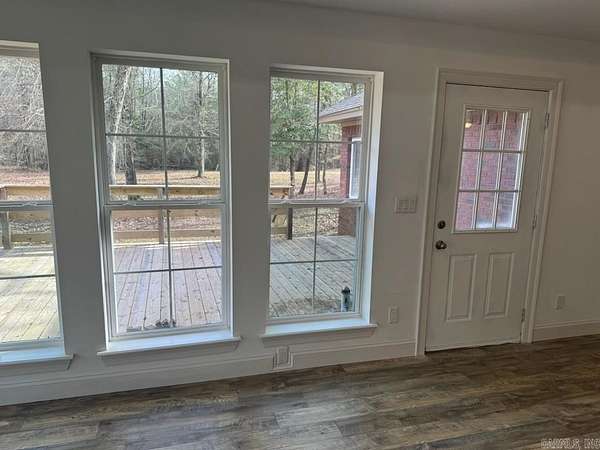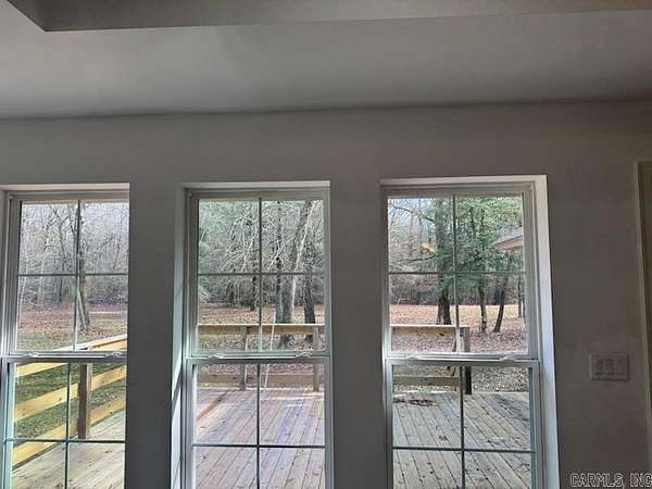 ADDRESS: 6052 GRANT 8 SHERIDAN, AR 72150 . Looking for a home in the country to enjoy the peace and quiet? Then look no further. This recently remodeled 4-bdrm home, just south of Sheridan, is nestled on 8 wooded acres. Sip your morning coffee as you sit on the front porch enjoying the beautiful view of the pond and picturesque land. Soak up nature as you watch the deer and turkey. This stunning residence boasts 3 spacious bedrooms and 2 full baths with a 4th bedroom with half bath being just off the garage. This extra bedroom could be used as an office . As you step inside, you will be greeted by a beautiful open concept living and kitchen area, perfect for entertaining. The kitchen features a large island and brand new appliances, ensuring a modern and functional space for your culinary adventures. The spacious living area invites you to relax, complete with a cozy wood burning stove that adds warmth and charm. Enjoy the beautiful view with floor to ceiling windows that bring the outdoors in. Enjoy the large deck perfect for grilling and entertaining. Retreat to the spacious master suite with vaulted ceiling complete with adjoining master bathroom with large closet.