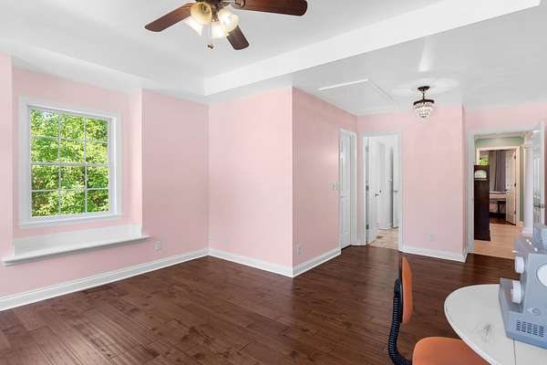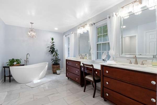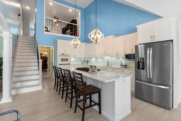 - Bar, Breakfast Bar, Breakfast Nook, Cathedral Ceiling(s), Crown Molding, High Ceilings, High Speed Internet, Kitchen Island, Open Floorplan, Pantry, Primary Downstairs, Separate Dining Room, Split Bedrooms, Tub/Shower Combo, Walk-In Closet(s)