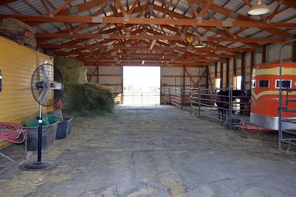 You will discover the methodically planned fencing system outside the well-appointed home. The property has been divided into numerous pastures for rotational grazing of the well-sodded grass paddocks. Three large Cleary buildings reside on the ranch. The 48' x 30' shop has a concrete floor and has been used for equipment storage and repair. The two horse barns, measuring 64' x 48' and 72' x 48', offer large horse stalls and spacious runs. The stalls are adjustable, so you can set them up to meet your needs. There are currently seven horse stalls, but they can easily be reconfigured into ten stalls with their own exterior doors. A dedicated space for hay storage, feed rooms, and tack rooms is within the barns. The corral system is set up to move animals easily from barn to barn or to the round pen and arena. This pen system would work for other species and can easily be adjusted.