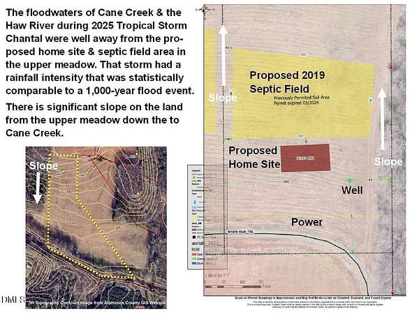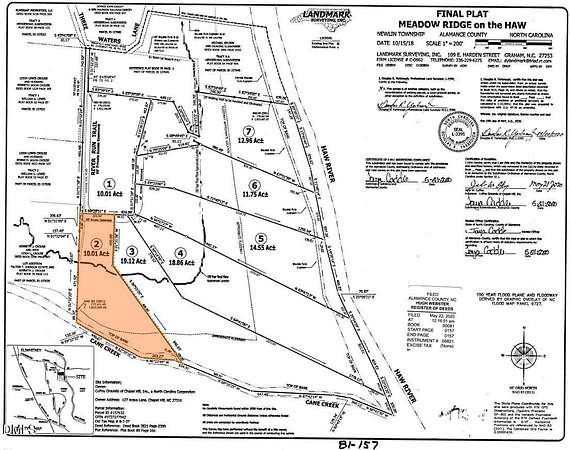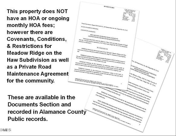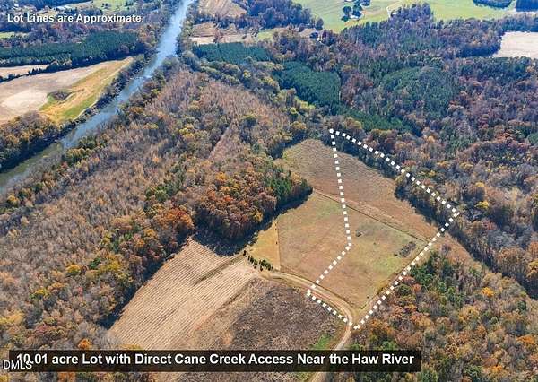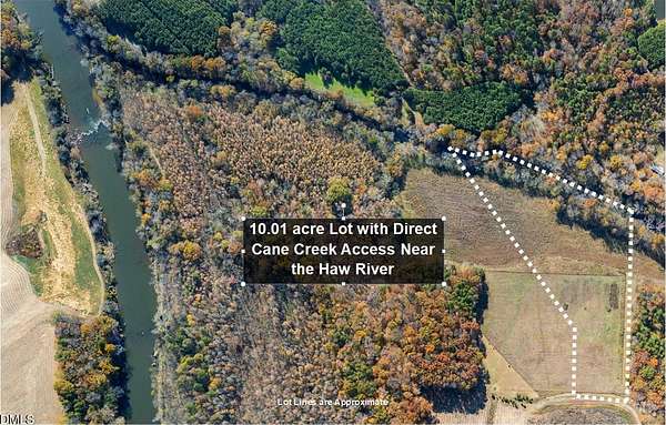 Escape the daily grind and retreat to this idyllic setting nestled against Cane Creek. This 10.01 acre lot features a gently sloping topography that leads you from the high ground in the upper meadow down towards the lush wall of mature trees next to the water. Find some shade and relax next to Cane Creek, then set up a fishing line or drop in a kayak and head out to the Haw River. This is more than just land; it is your opportunity to create a secluded getaway and savor these gorgeous natural surroundings. This is the place where you can finally slow down. Tucked away beyond the Hedgerows community, Meadow Ridge on the Haw is an unusual, small subdivision that offers all of the best protections for residential lots that allow agricultural operations without the typical HOA hassles and micro-managing. There are no HOA fees, but there is a sound road maintenace plan with yearly upkeep dues. You'll enjoy friendly, capable, long-time neighbors who help each other out, but you can barely see other people's homes and there is very little in-neighborhood traffic. Build big or small or nothing at all - you decide on your lot. Come alone or bring your animals - you have a lot of options. You can make this your weekend picnicing getaway, a sustainable country homestead , or your self-sufficient farm-to-table dream. You decide what you do on this land. You'll feel away from it all here on River Run Trail, but you're really just 6.6 miles from the vibrant Saxapahaw arts & music scene and only 12.2 miles from Downtown Carrboro. Enjoy low Alamance County taxes without sacrificing proximity to major hospitals, award-winning restaurants, RTP, and endless miles of trails and protected parks. Stay connected to the amenities in the Triangle and Triad while enjoying your slice of unspoiled nature. Why compromise when you can be here? NOTE: The neighboring lot at 6061 River Run Trail is also for sale.