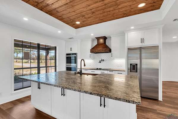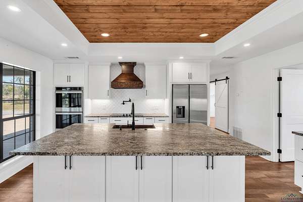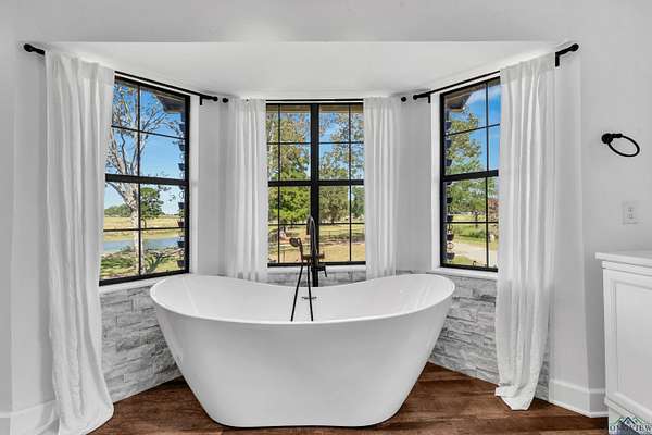 This sprawling estate offers breathtaking views from its decks overlooking almost 40 acres of pristine land, complete with two expansive ponds. Inside, the home has been thoughtfully updated with modern floors, countertops, appliances, and refreshed paint. The spacious 5-bedroom, 3-bath layout ensures there's room for everyone, with abundant storage options. The primary suite is a sanctuary of its own, featuring two large spacious closets and a luxurious primary bath. Soak in the tub with a view of your land or invigorate yourself in the multi-headed tiled shower. Enjoy sunrise or sunset from the master bedroom deck. Outside, the backyard is a retreat with a pool for lounging and swimming, a hot tub for relaxation, and ample space to bask in the Texas sun. The property also features a massive 6,000+ sq ft insulated shop with living quarters and two project rooms, ideal for any hobbyist or entrepreneur. Whether you're looking to work or play, this ranch delivers on all fronts. It's more than just a home--it's a lifestyle. Don't miss your chance to make it yours!