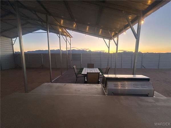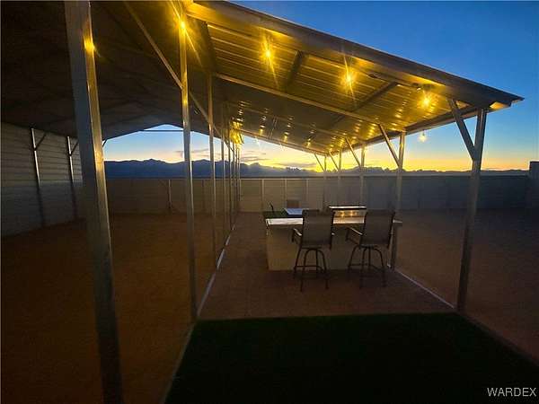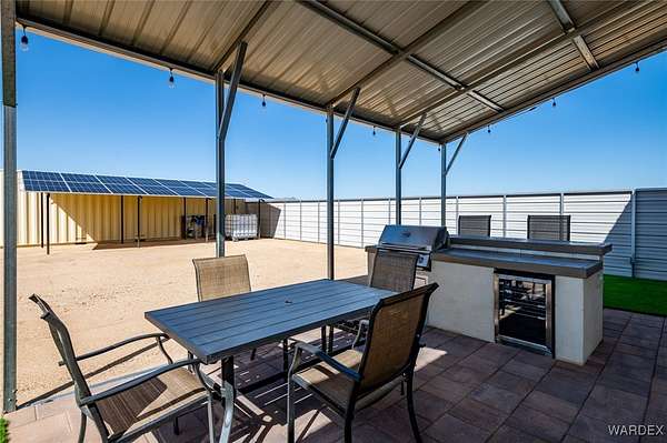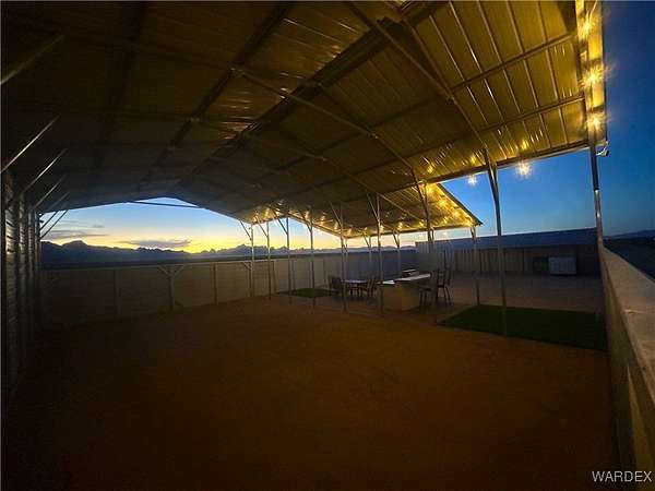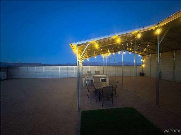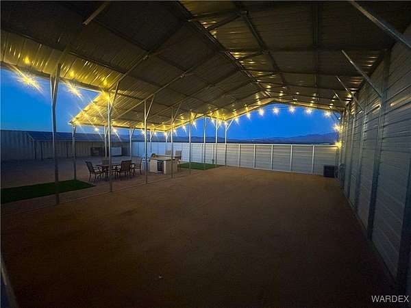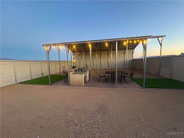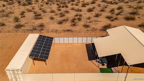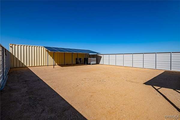 Welcome to your very own off grid RV resort! This is a one of a kind 1.1 acre fully fenced RV getaway located in Golden Valley Arizona, not far of historic Route 66. Featuring a 24 x40 carport w/20 x12 lean-to(permitted) with custom courtyard fence with gates, a single trip, high cube container that houses your solar equipment and has plenty of room to store your desert toys and tools. Installed 3 bedroom septic and water pump system fed by 2-IBC Totes for water haul which allows for easy hookup to your RV. The courtyard allows for privacy and offers a space for relaxing or entertaining with plenty of room and a thoughtfully designed custom outdoor kitchen BBQ with bar and refrigerator, artificial turf and pavers to accent this beautiful and peaceful space. Powered by a newly upgraded 20KW solar system with 50 Amp/240V RV outlet & multiple 15 Amp/120V yard outlets, more than enough energy to suite your your needs and more. Enjoy the beautiful sunsets over the picturesque Black Mountains to the West and watch the Sunrise over the Hualapais to the East. Take off and explore the desert or lakes, this is a prime location for all outdoor activities and not far from the Laughlin or Vegas nightlife. You will truly have it all with this one. Best of all there are no restrictions on this property, build a custom home, install a mobile home or simply live in your RV. Just to recap, here is what you get with this spectacular deal. First and foremost everything is already done with excellent craftmanship! 1.1 acre Cleared 6 perimeter fence 14 Gate Graded pad 3BR septic system 24 x40 carport w/20 x12 lean-to Single trip, high cube container Custom courtyard fence w/gates 20KW solar system w/50 Amp/240V RV outlet & multiple 15 Amp/120V yard outlets 2-IBC Totes for water haul Water filtration system Water pump system w/hook-ups Custom BBQ w/grill, refrigerator Pavers Artificial turf NO HOA or CCR's Contact an agent to visit the property today!