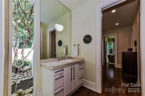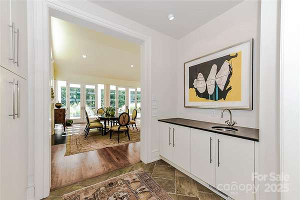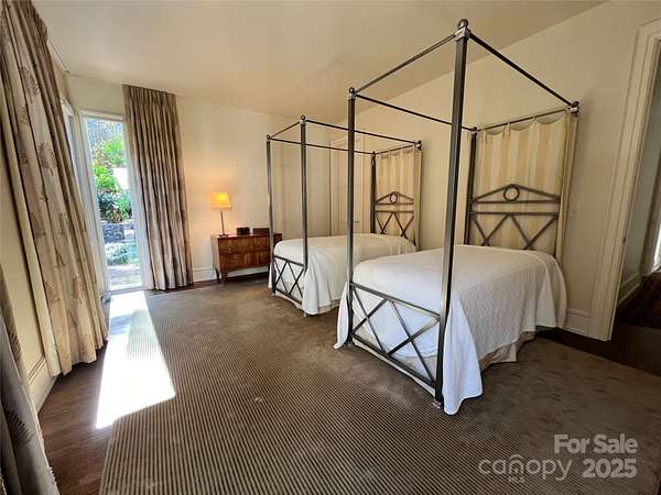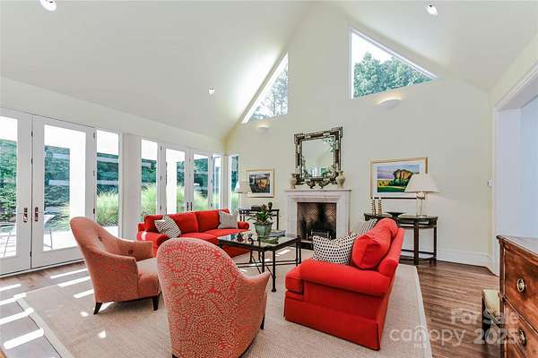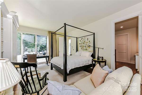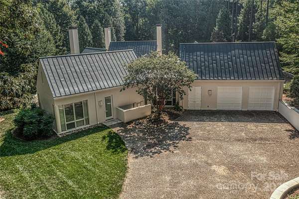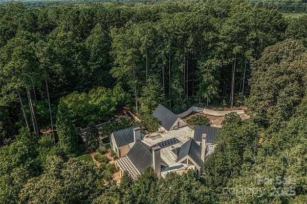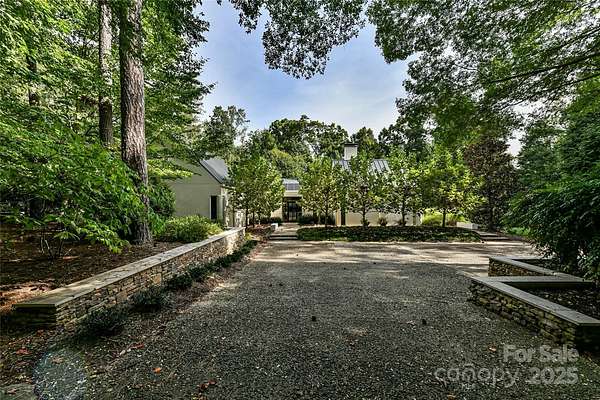 Located just 1.5 miles from downtown Davidson, 606 Ardrey Circle is one of the area's most beautiful homes! The owners took great care in planning every single detail and have lovingly maintained it. The exquisite residence sits on a private 2.64-acre property, enveloped by gorgeous, mature trees. The property is absolutely beautiful, with a grassy lawn, stone walls and steps, woodland paths, stone firepit, sculptures and multiple spaces to relax. One of the most stunning features is a large stone waterfall that is visible from inside the house. There is ample room for a large pool and pool house. Built by Gene Keener (Fine Homes), the modern home was designed by Charlotte architect Jim Meyer and blends in perfectly with the natural surroundings. Light is abundant in each room and outdoor spaces abound. Most of the living space is on the main level, including 4 bedrooms and 4 & 1/2 bathrooms. The oversized, custom glass front door is surrounded by transoms and leads to a gracious entrance hall and spectacular central gallery atrium with glass ceiling. The house is composed of six pods around the central living space. The spacious living room/ dining room is vaulted and features 2 wood burning fireplaces and a wall of French doors that open to a generous stone veranda with pergola with a lovely trellis ceiling. A partially covered tile patio off the great room offers an amazing view of the waterfall and the surrounding forest. The great room has a wood burning fireplace and built-in bookcases and is open to the kitchen, which has honed granite counters and stainless steel appliances, including a gas stove and stainless steel vent. A large butler's panty for additional storage and counter space is adjacent to the kitchen. Ten foot ceilings downstairs, tall wood doors and built-ins add to the comfortable, elegant feel. The stone flooring in kitchen, family room and all 3 full baths is heated. The two primary bedrooms are located near the great room and back hall which leads to an oversized 2 car garage. A spacious laundry utility room is conveniently located there along with back stairs that lead to a bonus room and loft area. Two additional bedrooms with en-suite bathrooms are off the foyer. There are two wells on the property that provide water for the waterfall feature & irrigation for the gorgeous grounds. 606 Ardrey Circle is an amazing home in a truly phenomenal location in the heart of Davidson.