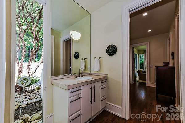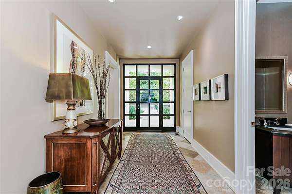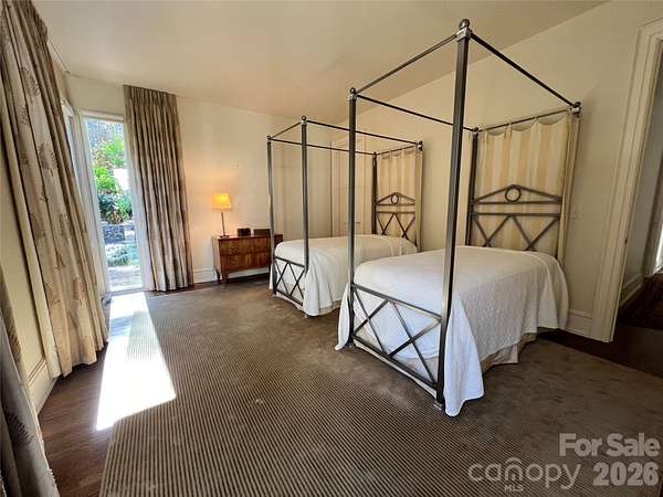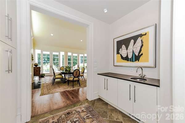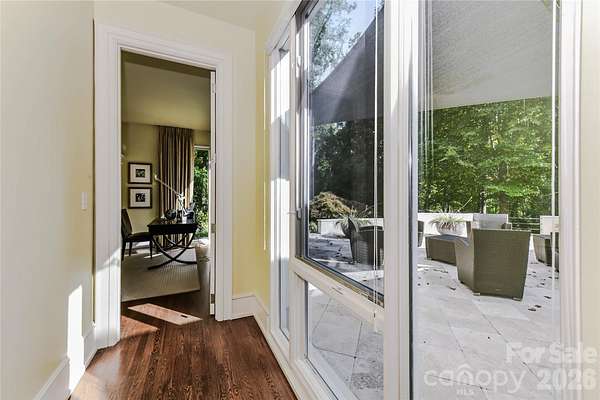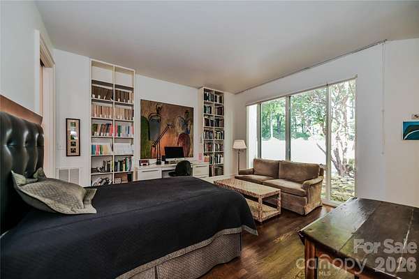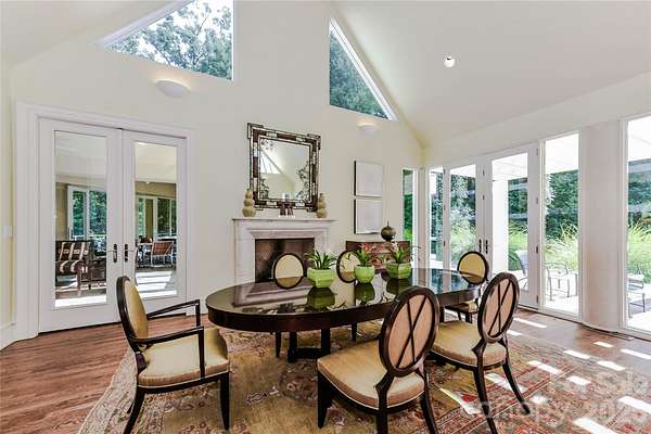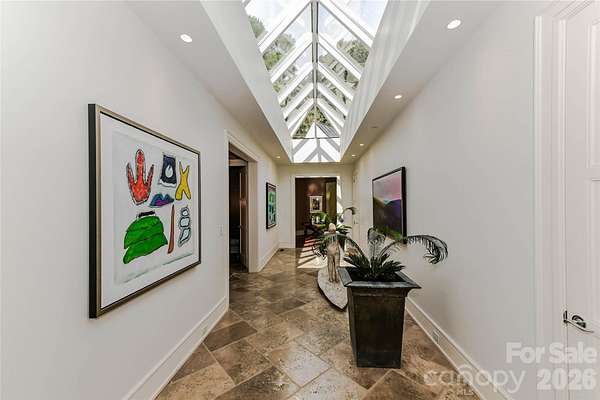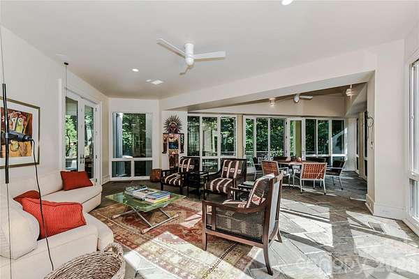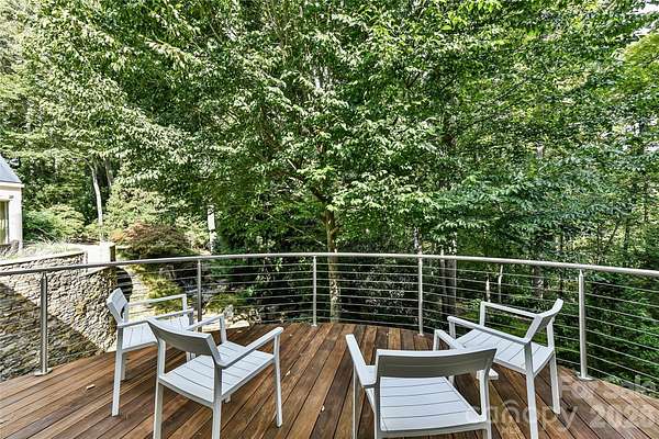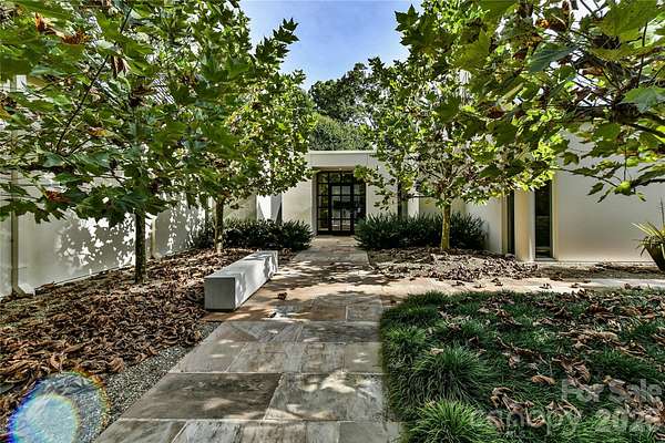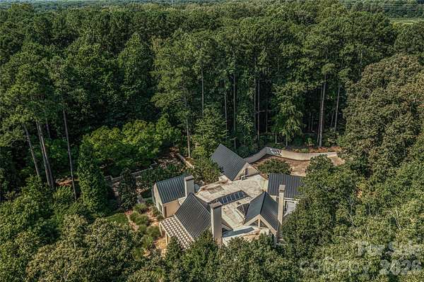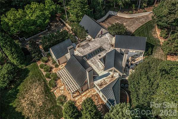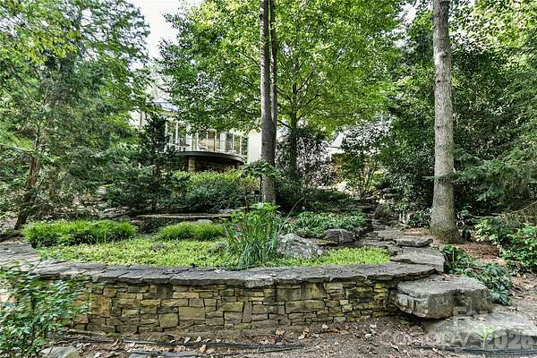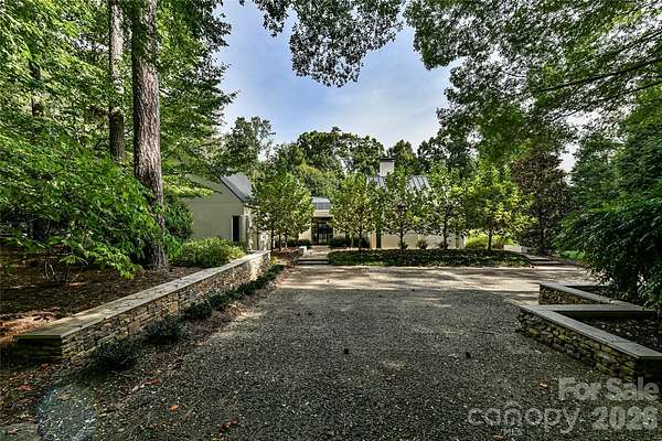 Located just 1.5 miles from downtown Davidson, 606 Ardrey Circle is one of the area's most beautiful homes! The owners took great care in planning every single detail and have lovingly maintained it. The exquisite residence sits on a private 2.64-acre property, enveloped by gorgeous, mature trees. Accessory Dwelling Unit would most likely be allowed. Please confirm with the Town of Davidson. The grounds are absolutely beautiful, with a grassy lawn, stone walls and steps, woodland paths, stone firepit, sculptures and multiple spaces to relax. One of the most stunning features is a large stone waterfall that is visible from inside the house. There is ample room for a large pool and pool house. Built by Gene Keener (Fine Homes), the modern home was designed by Charlotte architect Jim Meyer and blends in perfectly with the natural surroundings. Light is abundant in each room and outdoor spaces abound. Most of the living space is on the main level, including 4 bedrooms and 4 & 1/2 bathrooms. The oversized, custom glass front door is surrounded by transoms and leads to a gracious entrance hall and spectacular central gallery atrium with glass ceiling. The house is composed of six pods around the central living space. The spacious living room/ dining room is vaulted and features 2 wood burning fireplaces and a wall of French doors that open to a generous stone veranda with pergola with a lovely trellis ceiling. A partially covered tile patio off the great room offers an amazing view of the waterfall and the surrounding forest. The great room has a wood burning fireplace and built-in bookcases and is open to the kitchen, which has honed granite counters and stainless steel appliances, including a gas stove and stainless steel vent. A large butler's panty for additional storage and counter space is adjacent to the kitchen. Ten foot ceilings downstairs, tall wood doors and built-ins add to the comfortable, elegant feel. The stone flooring in kitchen, family room and all 3 full baths is heated. The two primary bedrooms are located near the great room and back hall which leads to an oversized 2 car garage. A spacious laundry utility room is conveniently located there along with back stairs that lead to a bonus room and loft area. Two additional bedrooms with en-suite bathrooms are off the foyer. There are two wells on the property that provide water for the waterfall feature & irrigation for the gorgeous grounds. 606 Ardrey Circle is an amazing home in a truly phenomenal location in the heart of Davidson.