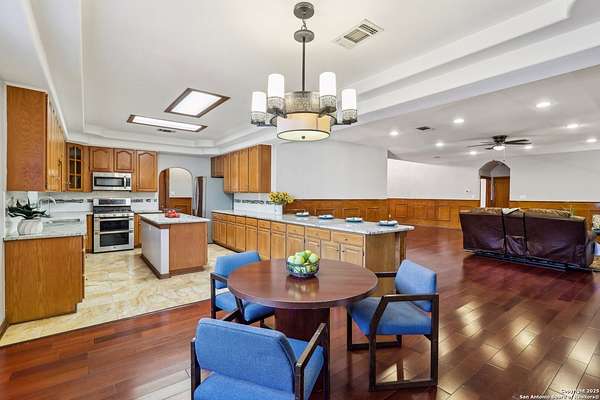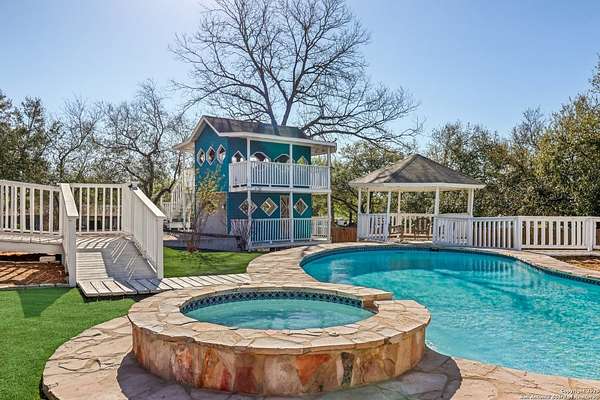 This one-of-a-kind 1.5-acre estate offers incredible versatility, space, and unique features rarely found in one property. With multiple dwellings, ample parking, and impressive outdoor amenities, this home is perfect for multi-generational living, rental income, business use, or ultimate entertaining. MAIN HOUSE: The stunning main residence features four spacious bedrooms, each with its own full bathroom, ensuring comfort and privacy for everyone. A half-bath is conveniently located downstairs, perfect for guests. The first-floor owner's suite includes private access to 2nd floor office or private quarters, sprawling primary bath with 0 threshold access. Balconies in both the front and back offer breathtaking views of the property. BONUS SPACE: A side structure-originally the main house-adds incredible potential. With a basement, this space can be customized into a man cave, game room, home theater, or additional living quarters. The attached two-car garage provides ample storage for vehicles, equipment, or a workshop setup. GUEST HOUSE & PARKING: Located at the back of the property is an additional dwelling unit featuring a full kitchen, making it ideal for rental income, in-laws, guest accommodations, or a home office. The property also features covered parking for approximately 8 cars or company trucks, making it ideal for homeowners with multiple vehicles or small business owners needing secure space. OUTDOOR PARIDISE: The outdoor space is an entertainer's dream! An in-ground pool and gazebo offer the perfect setting for summer gatherings, while a huge dollhouse adds charm and excitement. With so much potential, this incredible estate is ready for you to make it your own. Whether you're looking for a spacious home, a multi-use investment property, or the ultimate entertainment destination, this home offers it all. Best of all is the easy commute to major highways, shopping and restaurants Schedule a showing today and discover all this unique property has to offer!