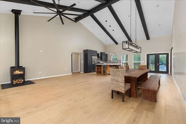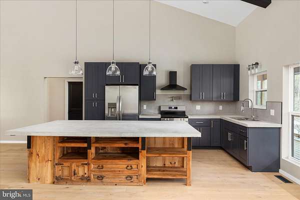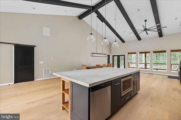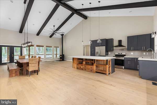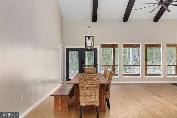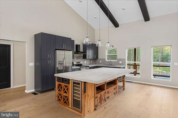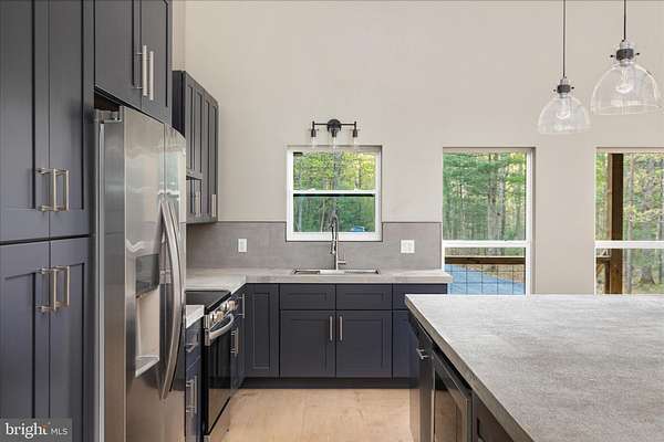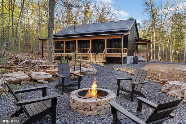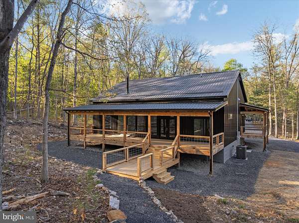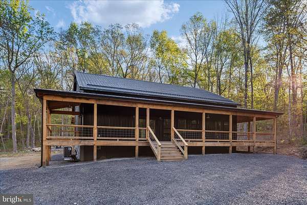 There's a certain kind of quiet magic in the mountains of West Virginia-where the air feels a little softer, the stars shine a little brighter, and life settles into a slower, more meaningful rhythm. This brand-new, barndominium-inspired cabin was thoughtfully created to meet that moment, blending modern design with the timeless pull of nature. Set against the backdrop of the George Washington National Forest, this striking 1776 sq ft retreat offers a seamless connection to the outdoors, where your backyard stretches into protected wilderness. The bold black metal roof and siding create a clean, architectural presence among the trees-low-maintenance, yet undeniably refined. Inside, the home unfolds with ease. One-level living invites comfort and simplicity, with three bedrooms and two full baths designed for both everyday living and effortless hosting. The spaces feel open yet grounded, perfect for gathering with family or slipping away for a quiet weekend. In the kitchen, concrete countertops and a matching backsplash-soon to be completed-will bring a modern, organic finish that complements the home's natural surroundings. Ceramic tile in the bathrooms and mudroom adds durability with a polished touch, while carefully chosen lighting in the dining area sets the tone for long, unhurried meals. Evenings are meant to be savored here. A newly built fire pit waits for stories, laughter, and stargazing, while the peaceful setting offers a sense of retreat that's increasingly rare. Practical details have been thoughtfully considered: a transfer switch is already in place, with pads ready for a future generator and propane tank, offering flexibility and peace of mind. A hot tub hookup on the back porch invites you to create your own private escape, and an electric vehicle charger out front adds a modern convenience that feels right at home. Tucked just 10 minutes from Wardensville, you're close to a charming small-town rhythm-local markets, cozy dining, and everyday essentials-yet worlds away from the noise. This is more than a home-it's a place to gather, to recharge, and to live more intentionally.