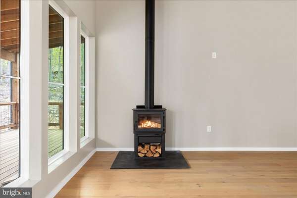 - Attic, Built-Ins, Ceiling Fan(s), Combination Dining/Living, Combination Kitchen/Dining, Combination Kitchen/Living, Dining Area, Entry Level Bedroom, Flat, Open Floor Plan, Recessed Lighting, Tub Shower Bathroom, Walk-In Shower Bathroom, Wood Floors, Wood Stove