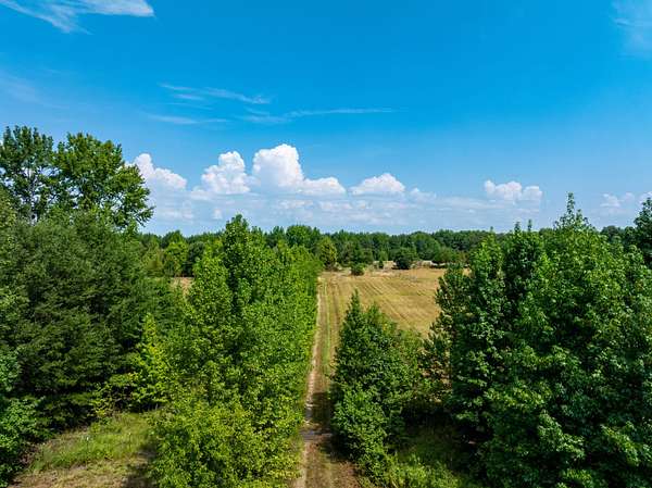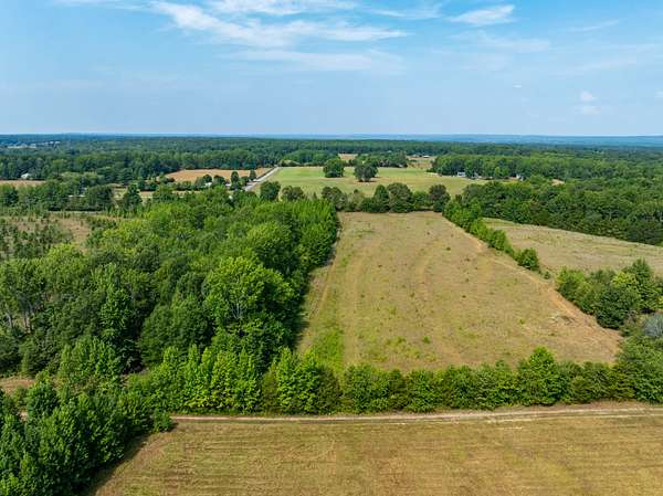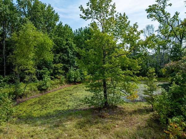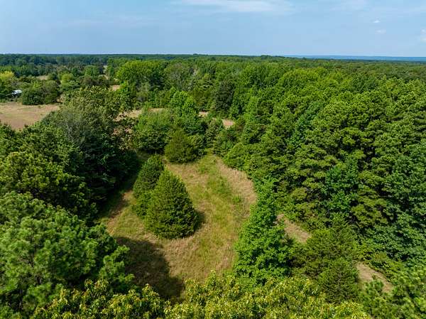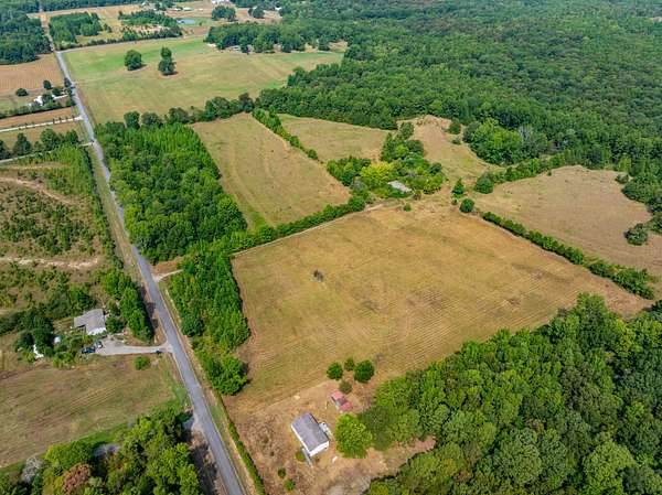 A private driveway runs through the center of the property and leads to an old homeplace. The existing structure is still standing but in poor condition and not safe to enter. It would need to be removed to make way for a new build, and this homesite offers a gorgeous setting for anyone wanting to create a country retreat.