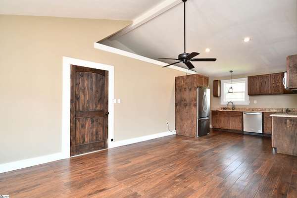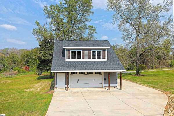 Unique opportunity to build your dream home on 1.33 acres of beautiful green pasture AND live comfortably in a sleek garage apartment while you do it! BUT ... you don't have to build!!!... This would also be a great setup for a buyer who needs only a small home but wants to stretch out in the pristine country setting with an unrestricted lot and ample garage space for a shop and two or more vehicles. This property features a 30 x 30 finished garage with an approximately 900 sq ft 1 bedroom 1 bathroom apartment above. The fully functional apartment offers an attractive full kitchen with granite countertops, engineered hardwood floors throughout, and a large open space for the living room/dining room combo. A portion of the living room, which already has a closet, could be converted into a second bedroom if needed by adding a wall, while still leaving plenty of space for a cozy living room open to the kitchen. The apartment boasts TONS of closet space which allows you to live comfortably. The primary bedroom suite has a good walk in closet. Another closet off the kitchen offers great pantry space. As mentioned earlier there is another closet space off the living room, and there is also a space at the top of the stairs leading into the home which offers a great space for shoes and a dropzone. A small loft or play/storage area could be added above the refrigerator if desired. Lots of extra spaces to utilize. One of the best features of this corner lot is that it offers two driveways with road frontage on Herman Brooks Rd and another off Lamar Mitchell Rd. There is already a nice long concrete driveway poured for you with an additional pad wrapping around the garage. A 1,000-gallon septic tank is in place for you to tap into if building. This location is super convenient with easy access to interstate 85 via Hwy 29. It's 15 minutes to Anderson and only 30 minutes to Greenville Memorial Hospital! This property puts you in the center of the world yet allows you to enjoy the peace and tranquilty of a picturesque country setting! Don't miss this one of a kind opportunity! Book your showing today!