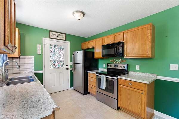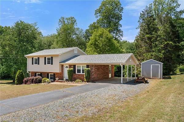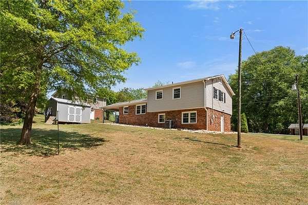 Charming, move-in-ready home on approx. 2 acres in the established Woodcreek neighborhood. Parcel includes Lot 235 and Lot 236. Step into a comfortable, light-filled living area with plenty of room to relax or entertain. The sunny eat-in kitchen offers ample cabinet and counter space for everyday meals and hosting, and the refrigerator is included. Carpet was replaced in April 2026. The home was updated by previous owner(s), including roof, sealed crawlspace, HVAC, water heater, windows, bedroom and closet doors, lighting, wood treads on steps to upper level, vinyl siding, and kitchen and both bathrooms remodeled. Per the City of King, the only permit on file is for the HVAC. The unfinished basement offers excellent expansion potential. Outside, enjoy a beautiful yard-perfect for gatherings and relaxing-plus a large storage shed. No HOA. You'll Be Sold!