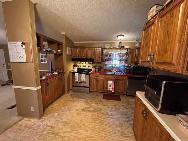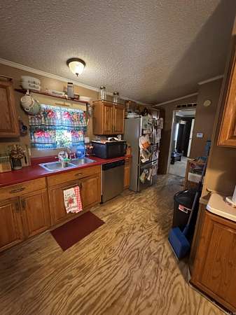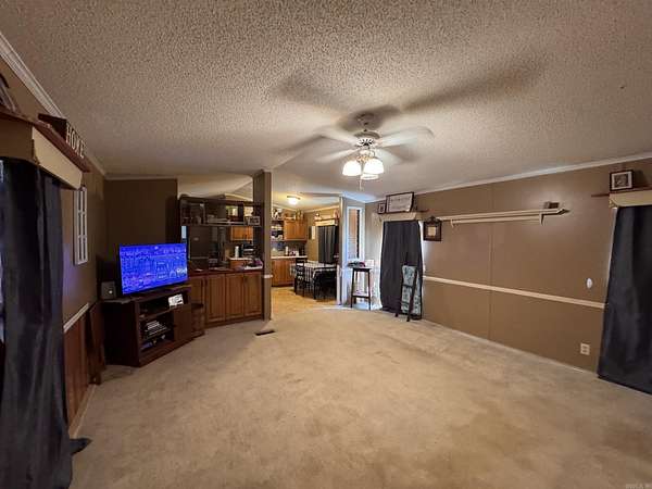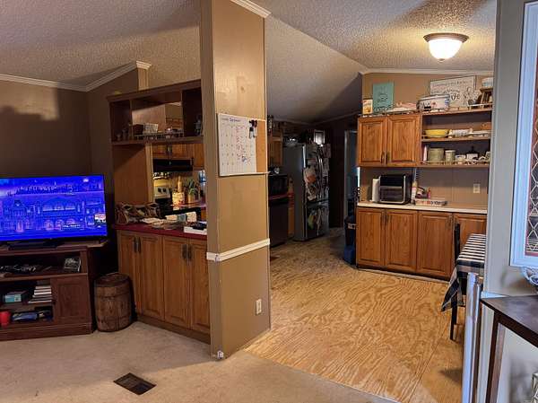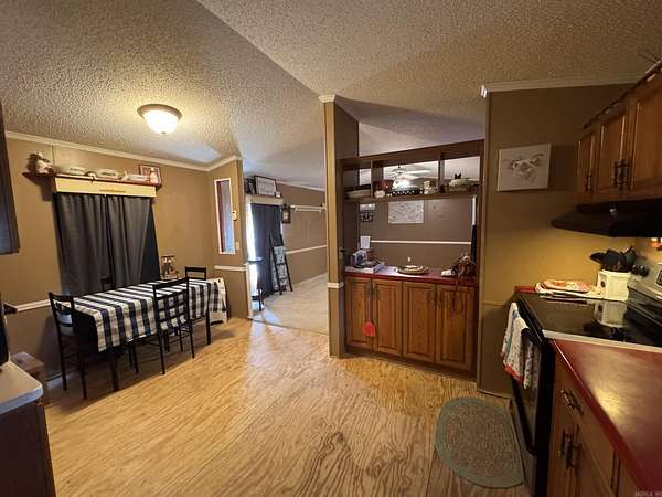 Est $507/moA country feel with pasture and wooded areas surrounding, this 5 acre lot has a home that sits back from the paved road. An added porch and extra room was built on to the original mobile home. The owners suite has a large connected bath with separate tub and shower. There is also shop building with a storm shelter. Lots of wildlife make this a great place for a hunting enthusiast, or room to have a small farm and livestock with a pond. See agent remarks for showing instructions.