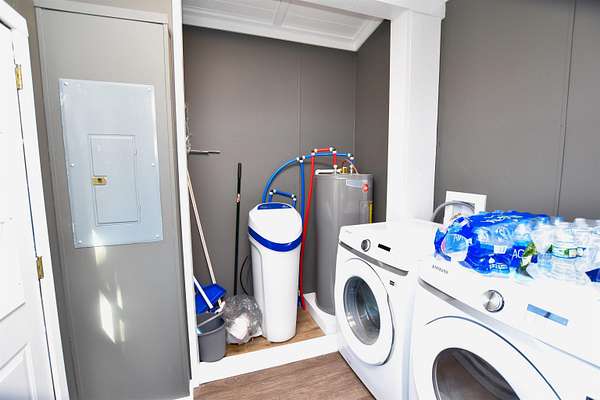 - 1 st Bedroom En Suite, Ceiling Fan(s), Deck Open, Dishwasher, Kitchen Exhaust Hood, Main Floor Laundry, Main Level Bedroom Suite, Porch Open, Range-Gas, Tub and Separate Shower, Tub/Shower Combination, Washer Hook-Up, Water Heater Electric, Water Softener-Owned