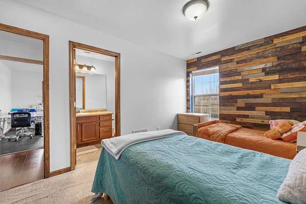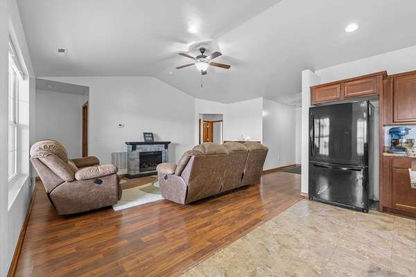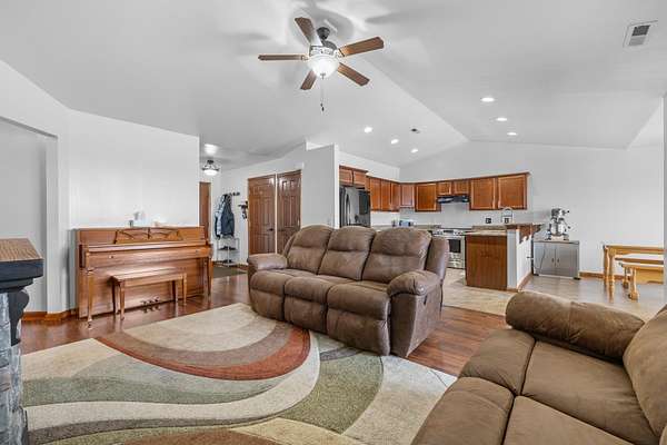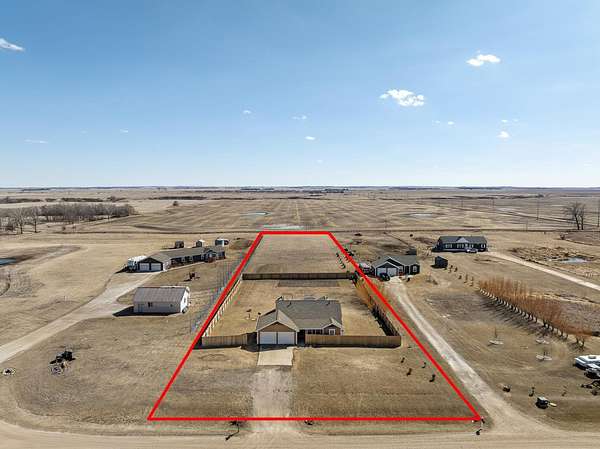 Country setting, everyday convenience. Located just outside of Minot, this 2-acre property offers the space you’ve been looking for without sacrificing proximity to town.This one-level home features 4 bedrooms and 3 bathrooms with an open concept design that feels both functional and inviting. The living and dining areas showcase dark laminate flooring, while the kitchen is anchored by rich cherry cabinets and granite countertops. Enjoy easy access to the outdoors with a dining area that opens to a covered patio, perfect for quiet mornings or evening gatherings. The primary suite offers a walk-in closet and private ¾ bath, while the second bedroom features its own full ensuite bathroom, ideal for guests or added privacy. Bedrooms three and four are thoughtfully positioned on the opposite side of the home with an additional full bath. A finished, insulated 2-car garage with floor drains adds everyday practicality, while a newer wood fence partially encloses the yard for added privacy.