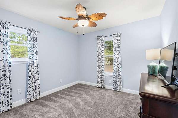 Bring your horse to this beautiful country home that is in a great location. It is south of the interstate on Coy Burgess Loop so you are close to Freeport and the beaches. This beautiful brick home with a metal roof has 3 bedrooms 2.5 bathrooms, garage, and large sun room overlooking the back yard. The yard is fully fenced with two horse paddocks, run in shed, and a building with water and electricity and a horse stall. The property is bordered by 3 roads so you only have one neighbor in the backyard.