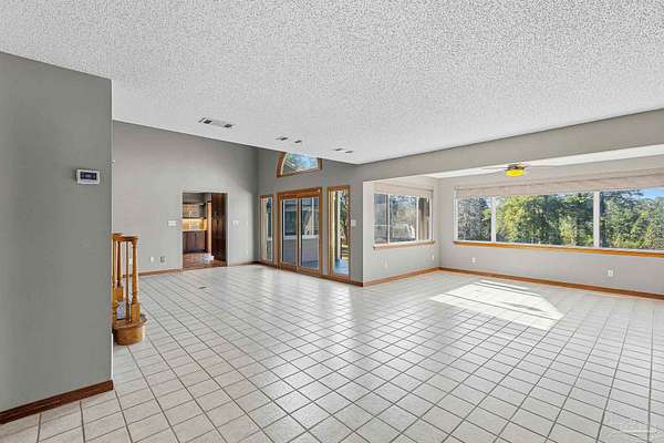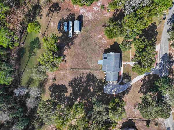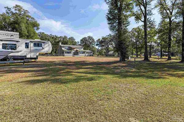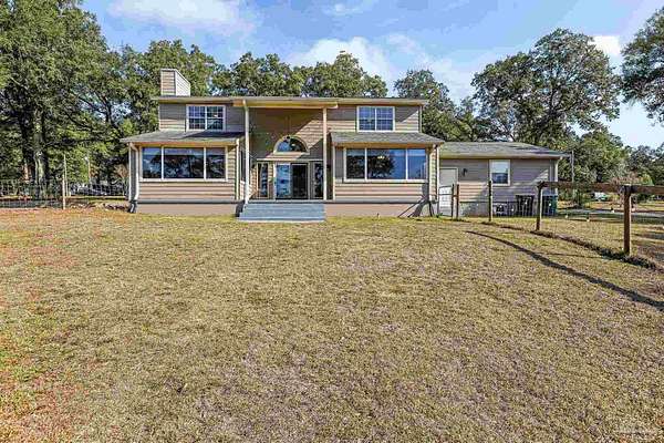 ASSUMABLE MORTGAGE AVAILABLE! Qualified buyers may assume the current loan balance at a lower-than-market interest rate. Call for details. Tucked away on 2.05 landscaped acres in Spanish Oak Manor, this move-in ready 3BR/2.5BA home offers 2,852 SF of Southern charm, space, and calm-while keeping Pensacola conveniences close by. A welcoming full-length front porch and circular drive with a fountain centerpiece lead into a dramatic, light-filled atrium with soaring ceilings, a sweeping staircase, and French doors to the patio. Picture windows across the back of the home frame serene views of the expansive yard and visiting wildlife. The heart of the home is an expansive kitchen featuring a large granite-topped island, abundant cabinetry, stainless steel appliances, and a sunny breakfast room wrapped in windows with warm brick-paver floors. The living room centers around a cozy fireplace, perfect for gathering. Upstairs, a loft/office overlooks the atrium and showcases beautiful custom stained-glass detail. Downstairs, a generous bonus room can easily be repurposed as a 4th bedroom, home office, or flex space. The private primary suite is thoughtfully set apart and offers a long dual-sink vanity, jetted tub, and separate shower. Hardwood, tile, and brick-paver flooring throughout add warmth and character. Outside, enjoy room to roam beneath mature trees, along with a well and sprinkler system supporting established landscaping. An oversized garage/workshop with built-in storage and a 2-story 16x24 storage building with electricity provide excellent space for tools, hobbies, and projects. Conveniently located approx. 5 miles to I-10, 9 miles to Navy Federal's campus, 15 miles to Downtown Pensacola and Palafox Street, approx. 20 miles to NAS Pensacola, and about 23-26 miles to Perdido Key and Pensacola beaches.