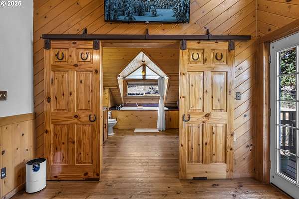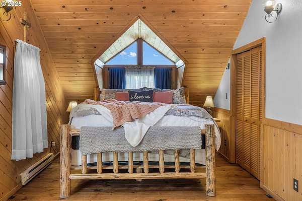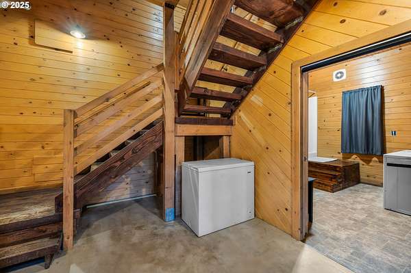 - Ceiling Fan, Concrete Floor, Garage Door Opener, Vaulted Ceiling, Wood Floors